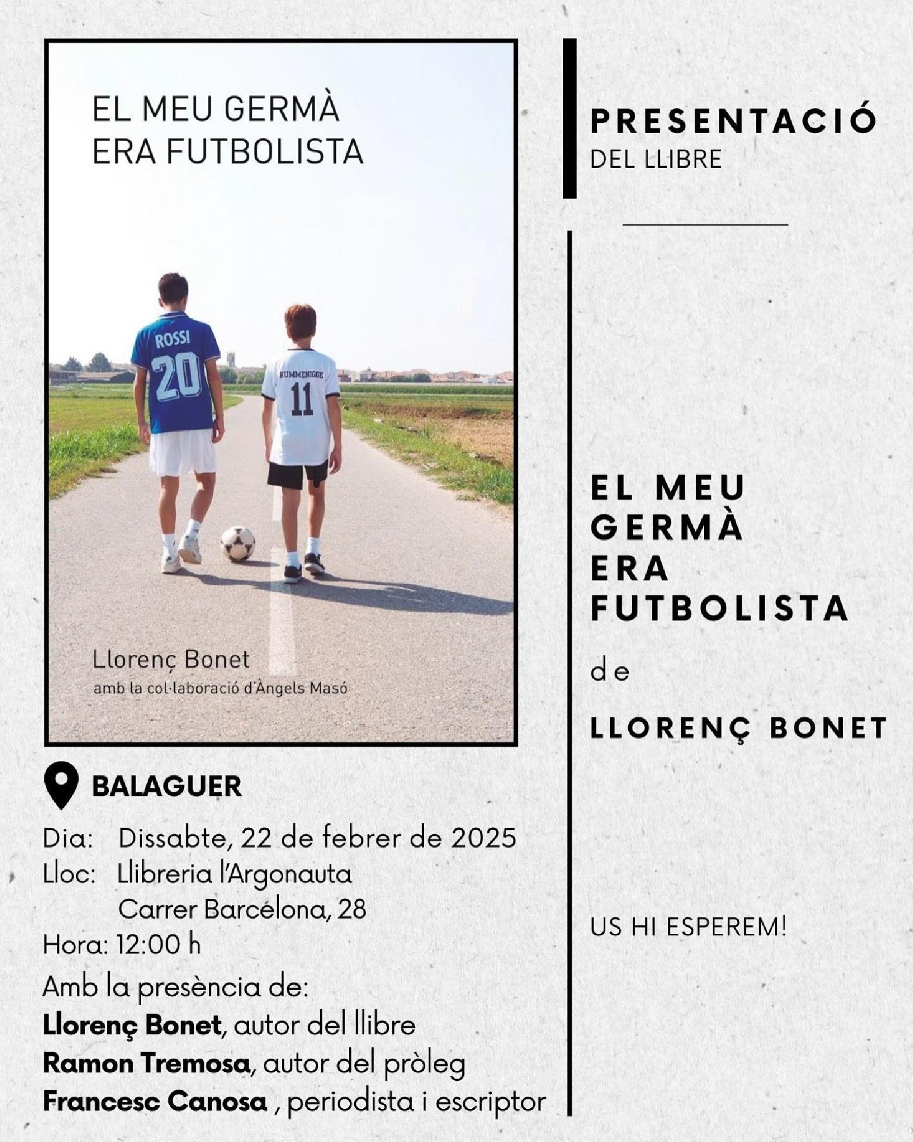 La Llibreria L'Argonauta acull el dissabte, 22 de febrer al migdia la presentació del llibre 'El meu germà era futbolista' de Llorenç Benet
