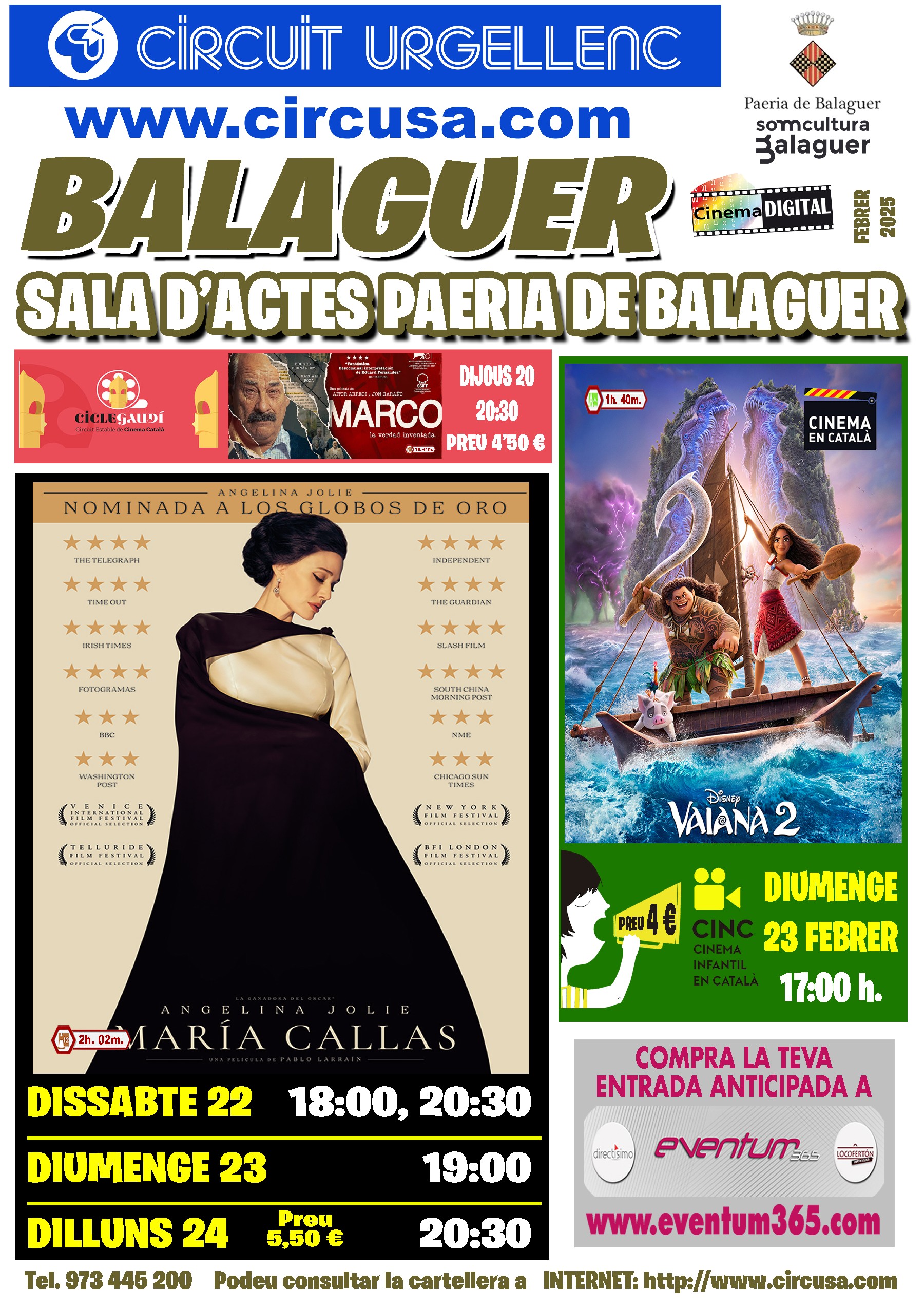 Arriben al Cinema Balaguer les projeccions de les pel·lícules VAIANA 2 i també MARIA CALLAS