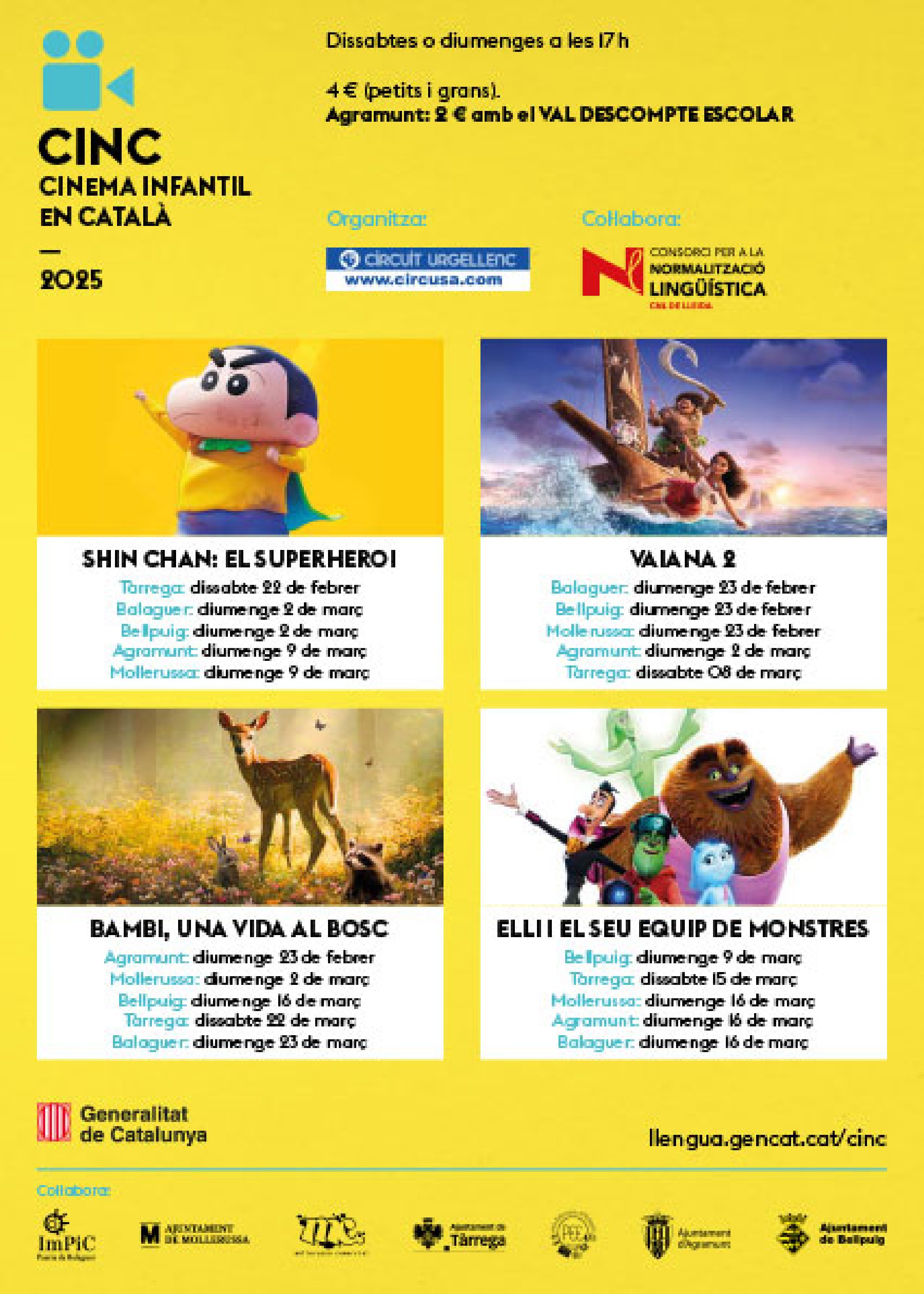 El programa de cinema infantil en català CINC arriba a 27 localitats en un sol cap de setmana. Aquest diumenge a Balaguer es podrà veure 'Vaiana 2'