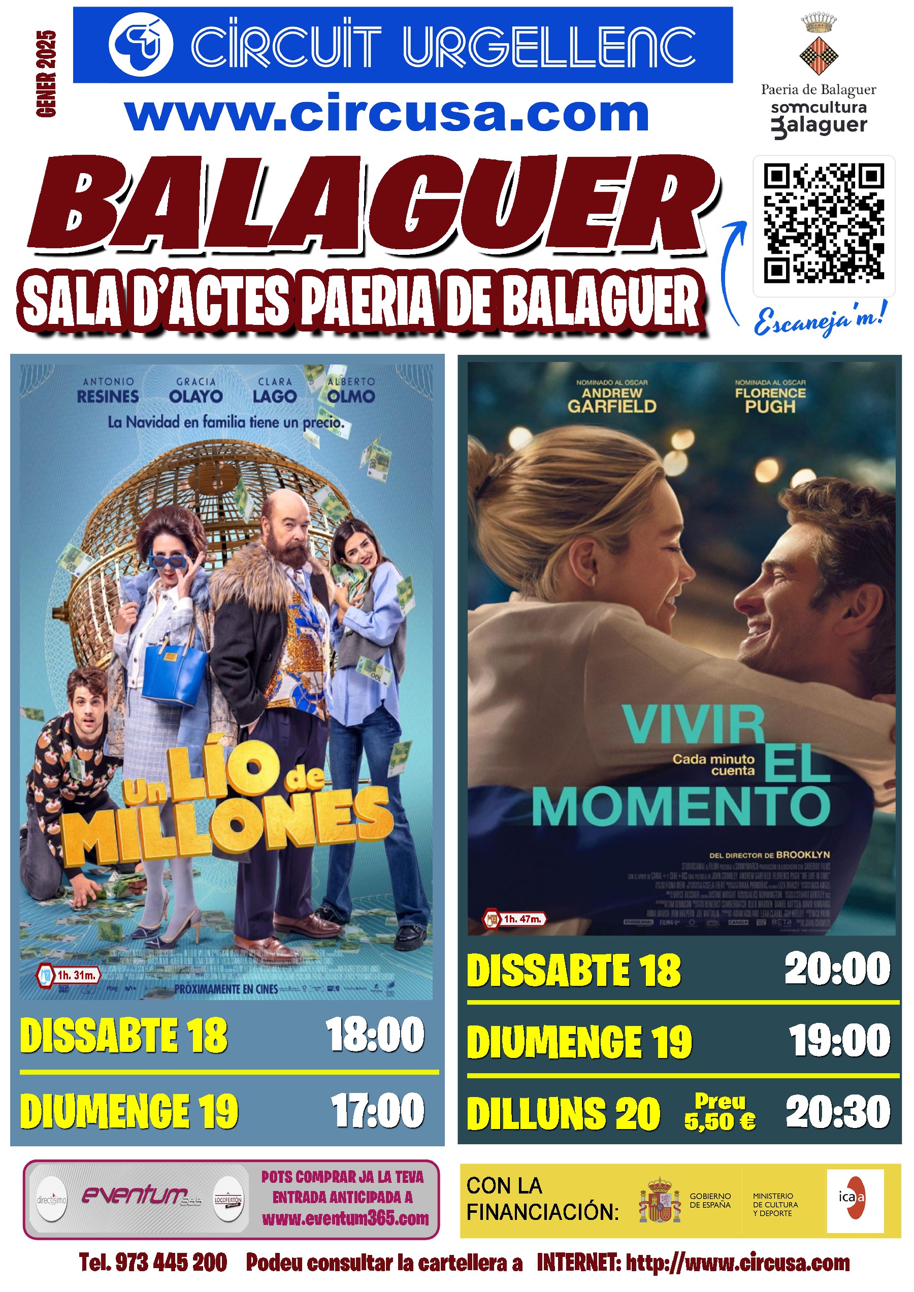 Arriben al Cinema Balaguer les projeccions de les pel·lícules UN LIO DE MILLONES i també VIVIR EL MOMENTO