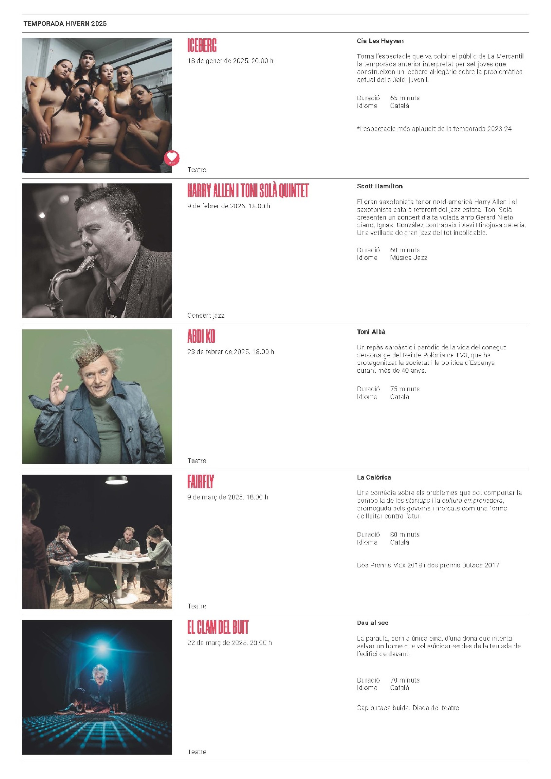 La Mercantil presenta la programació d'Hivern 2025 amb cinc espectacles de teatre perfomatiu, música jazz, paròdia bufona i teatre de text