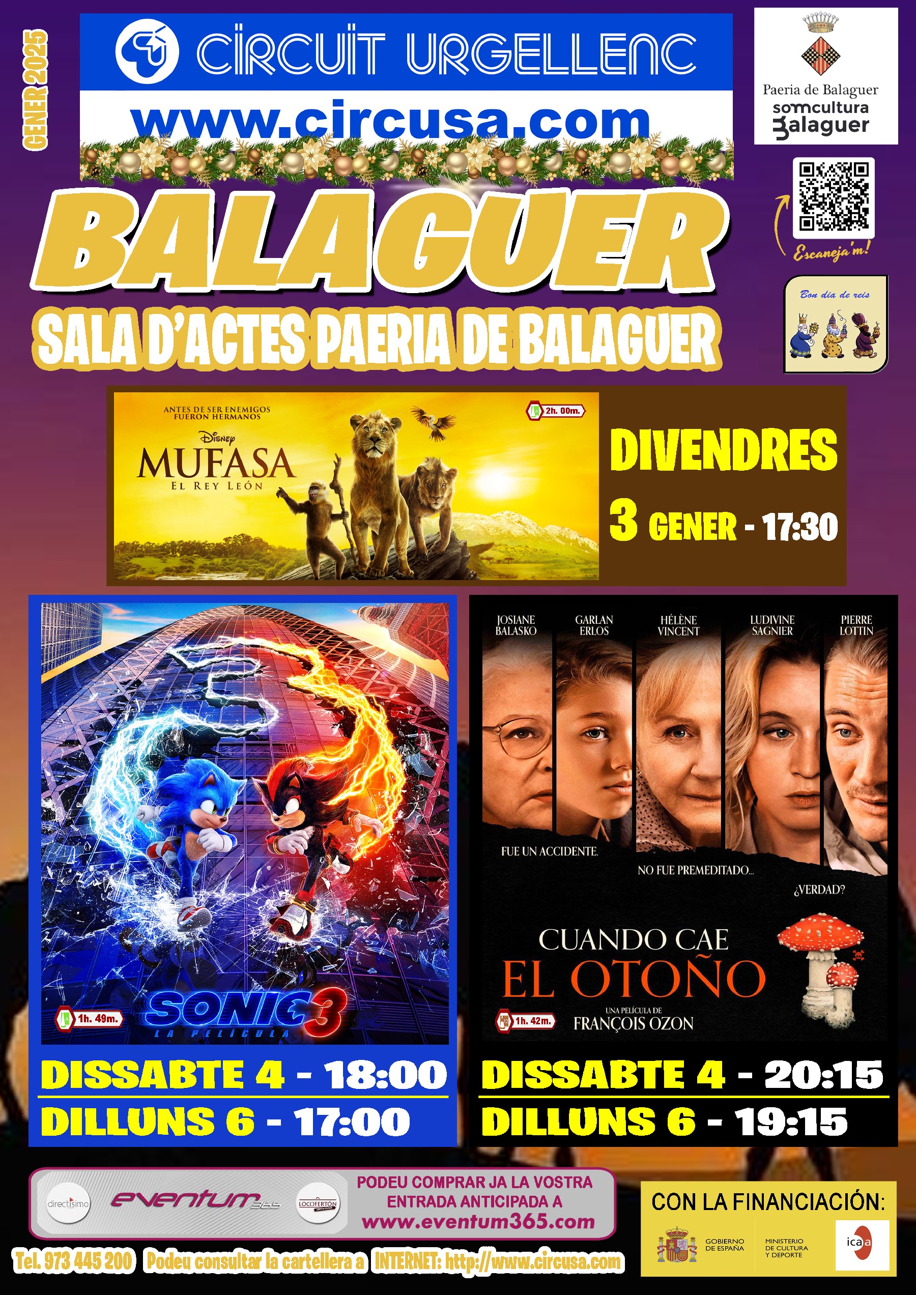 Arriben al Cinema Balaguer les projeccions de les pel·lícules SONIC 3 i CUANDO CAE EL OTOÑO
