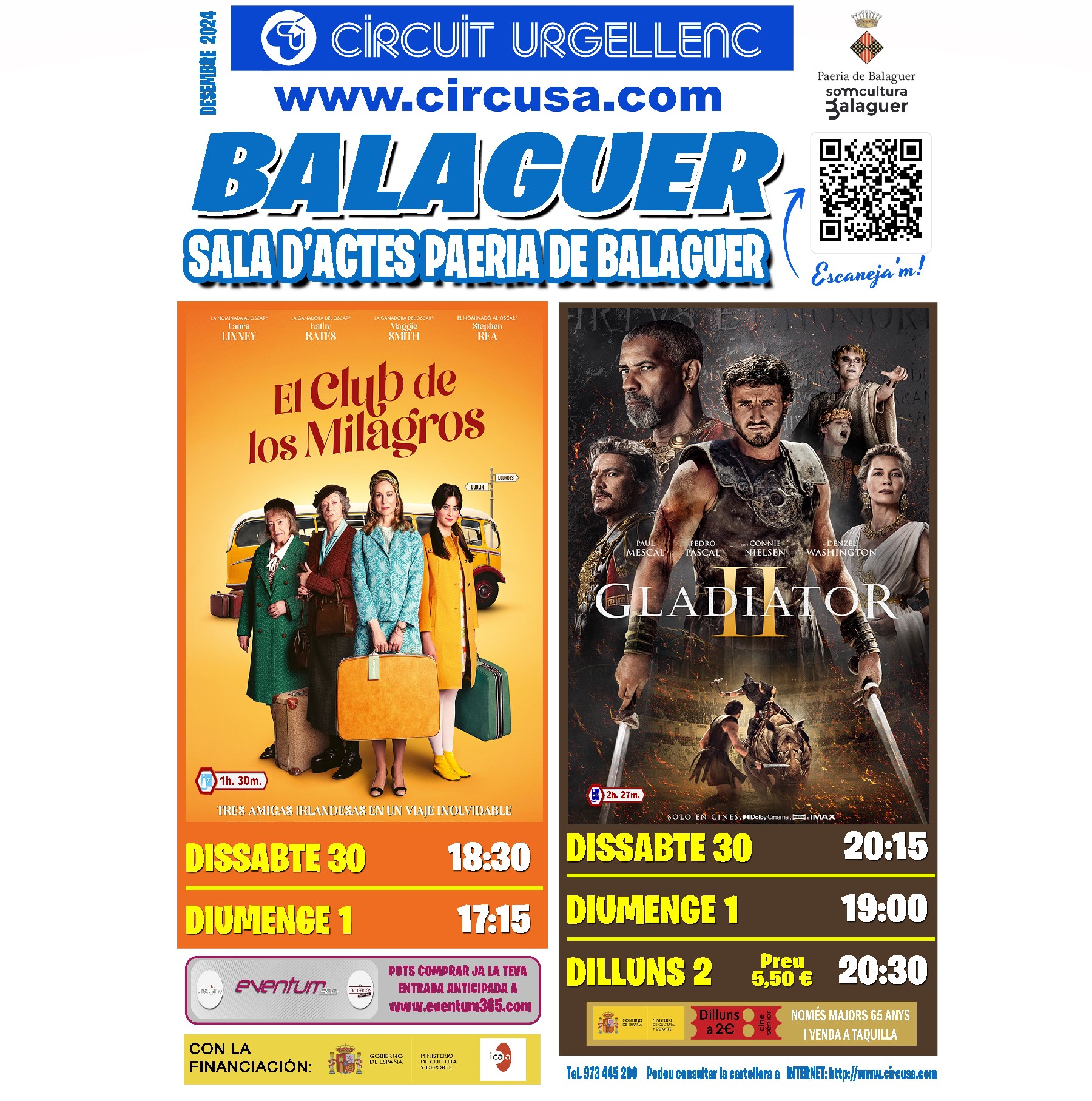 Arriba al Cinema Balaguer la projecció de les pel·lícules EL CLUB DE LOS MILAGROS i també GLADIATOR 2
