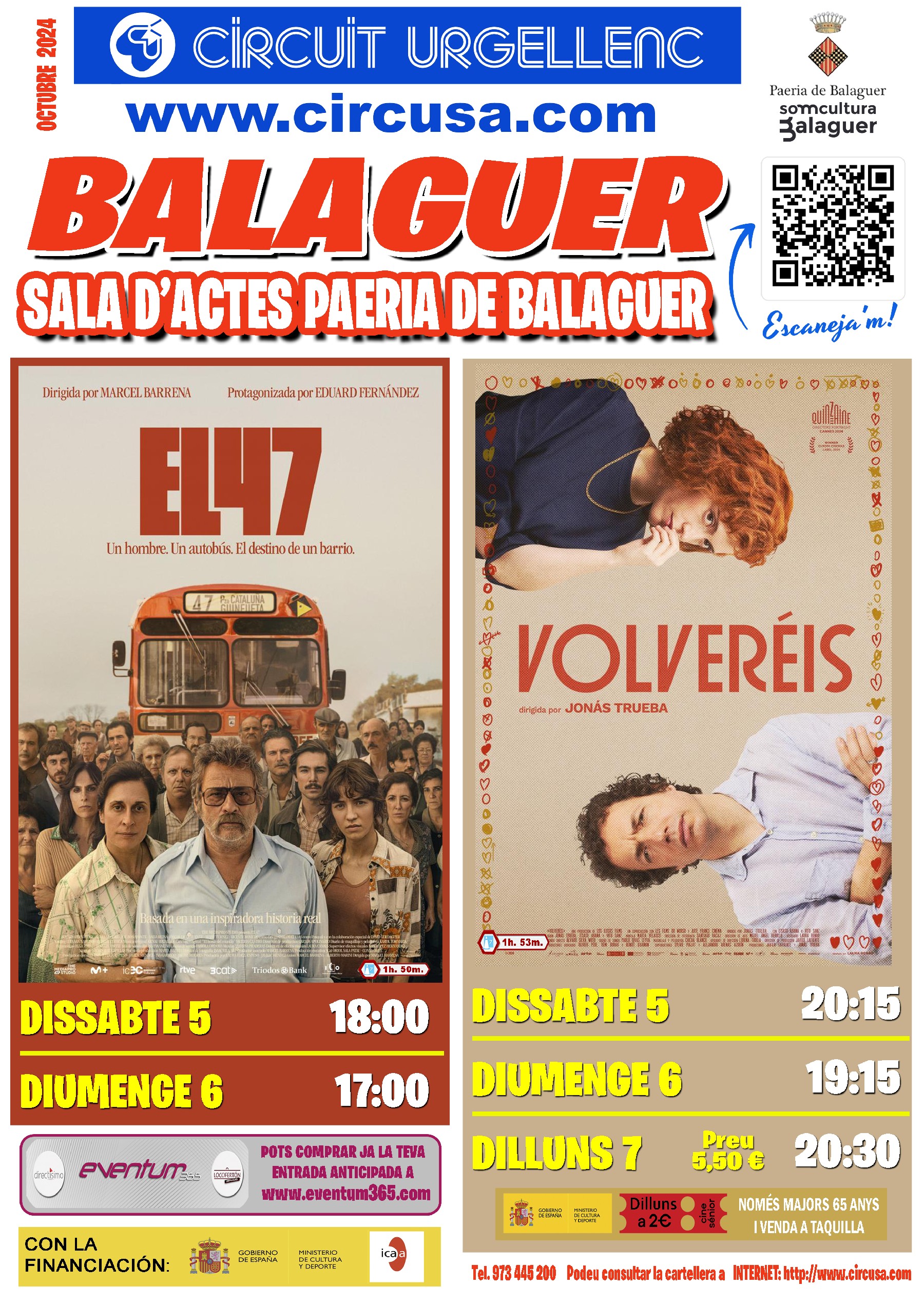 Arriba al Cinema Balaguer la projecció de les pel·lícules: EL 47 i VOLVERÉIS
