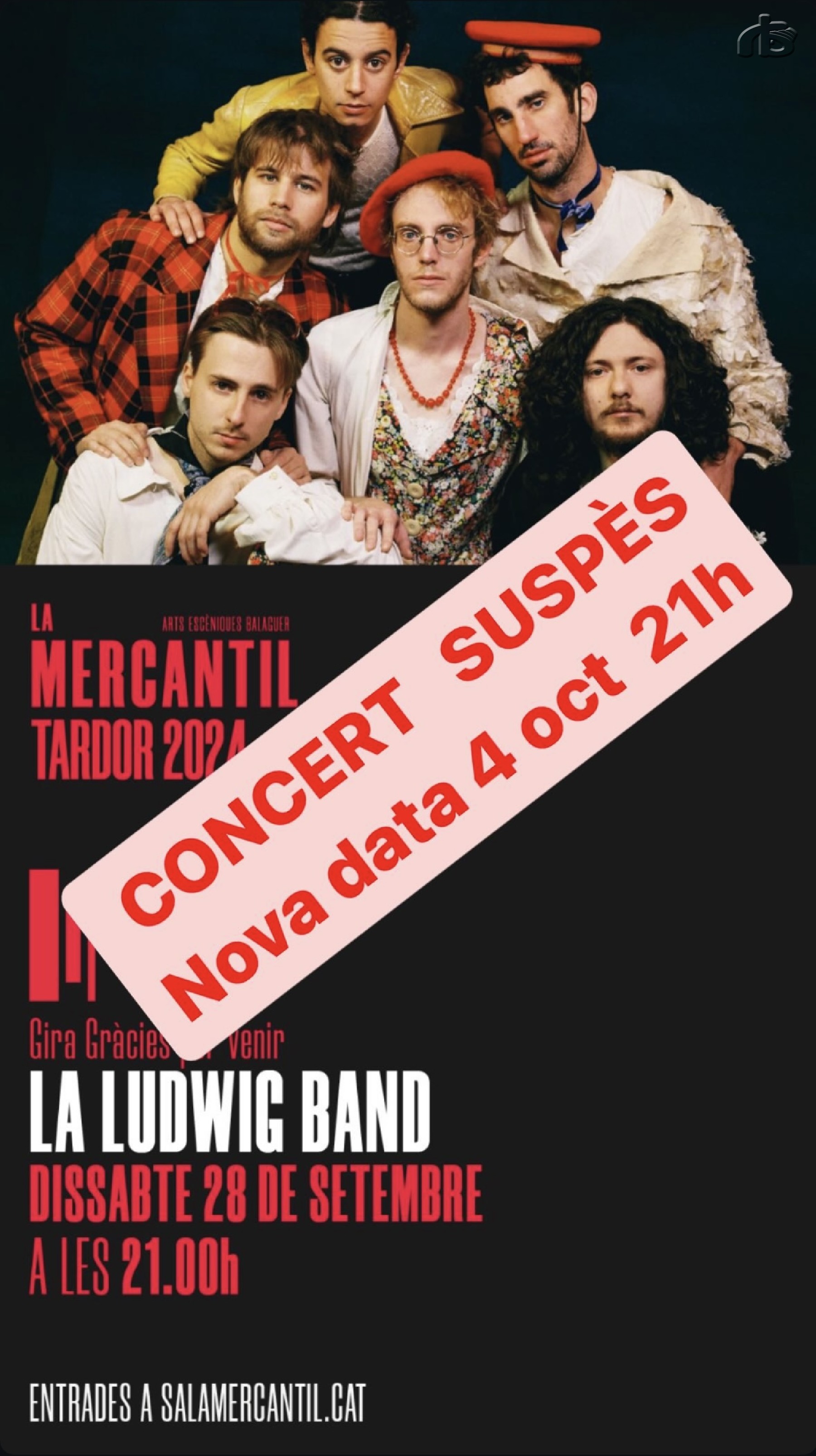 La Sala Mercantil ajorna al divendres dia 4 d'octubre el concert 'Gràcies per venir' de La Ludwig Band