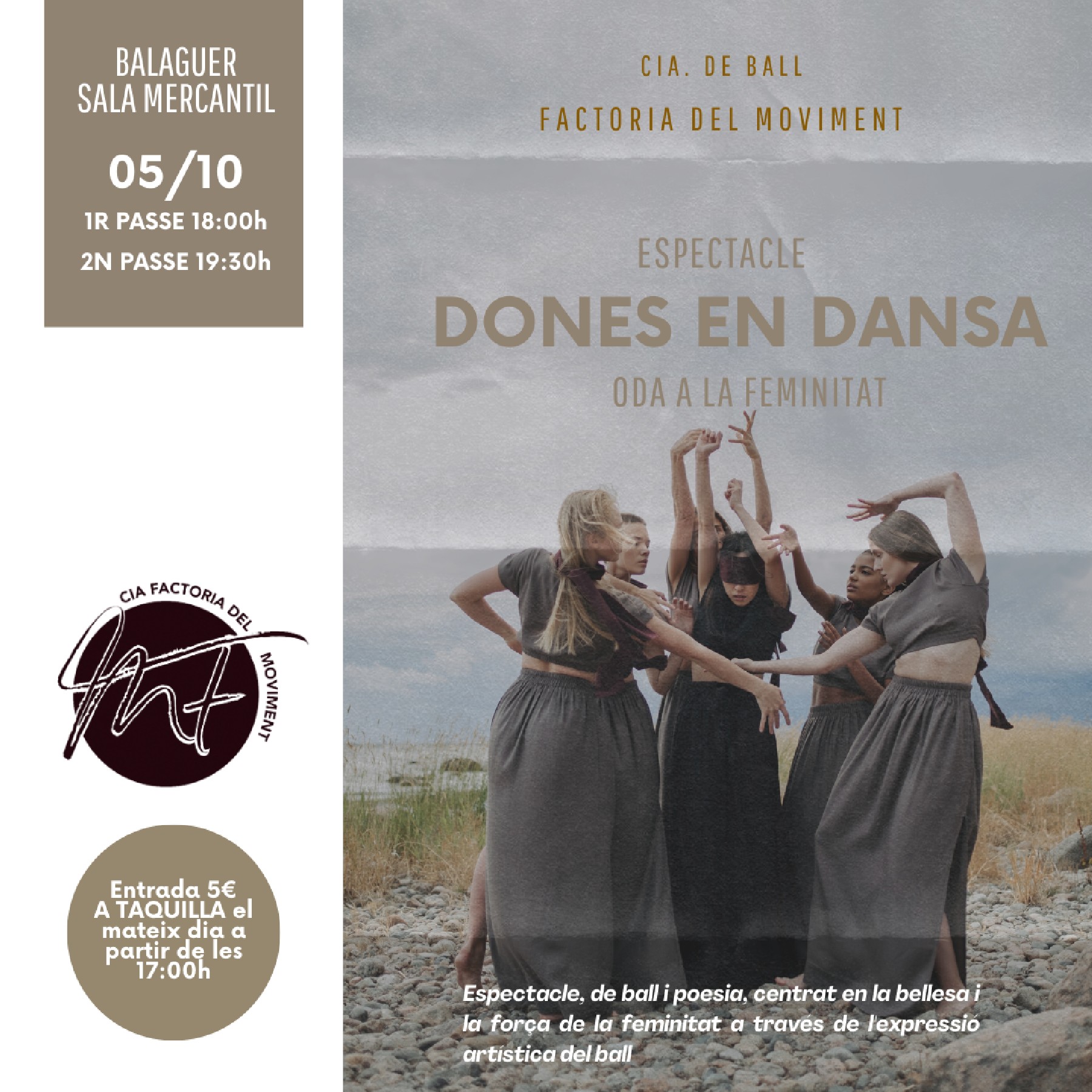 La Cia de ball, Factoria del Moviment, estrena el dissabte dia 5 d'octubre a la Sala Mercantil el seu nou espectacle DONES EN DANSA, ODA A LA FEMINITAT