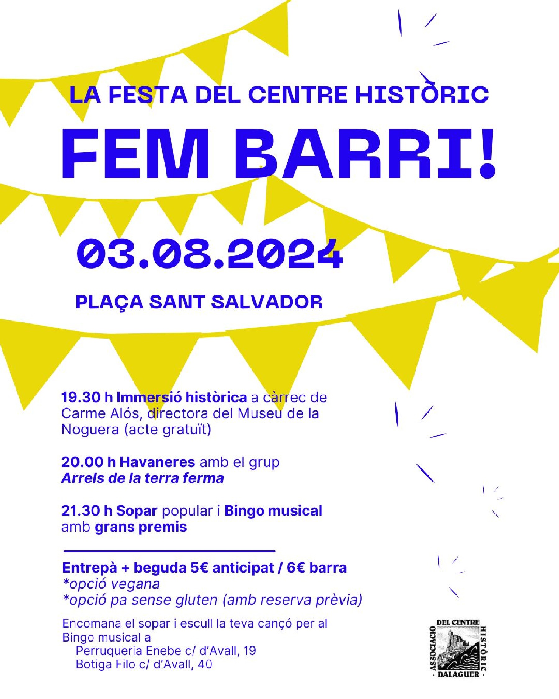 El Centre Històric de Balaguer va celebrar el passat cap de setmana la seva festa. L'associació de veïns valora positivament la seva Festa de Barri que va comptar entre d'altres amb un concert d'havaneres i un sopar