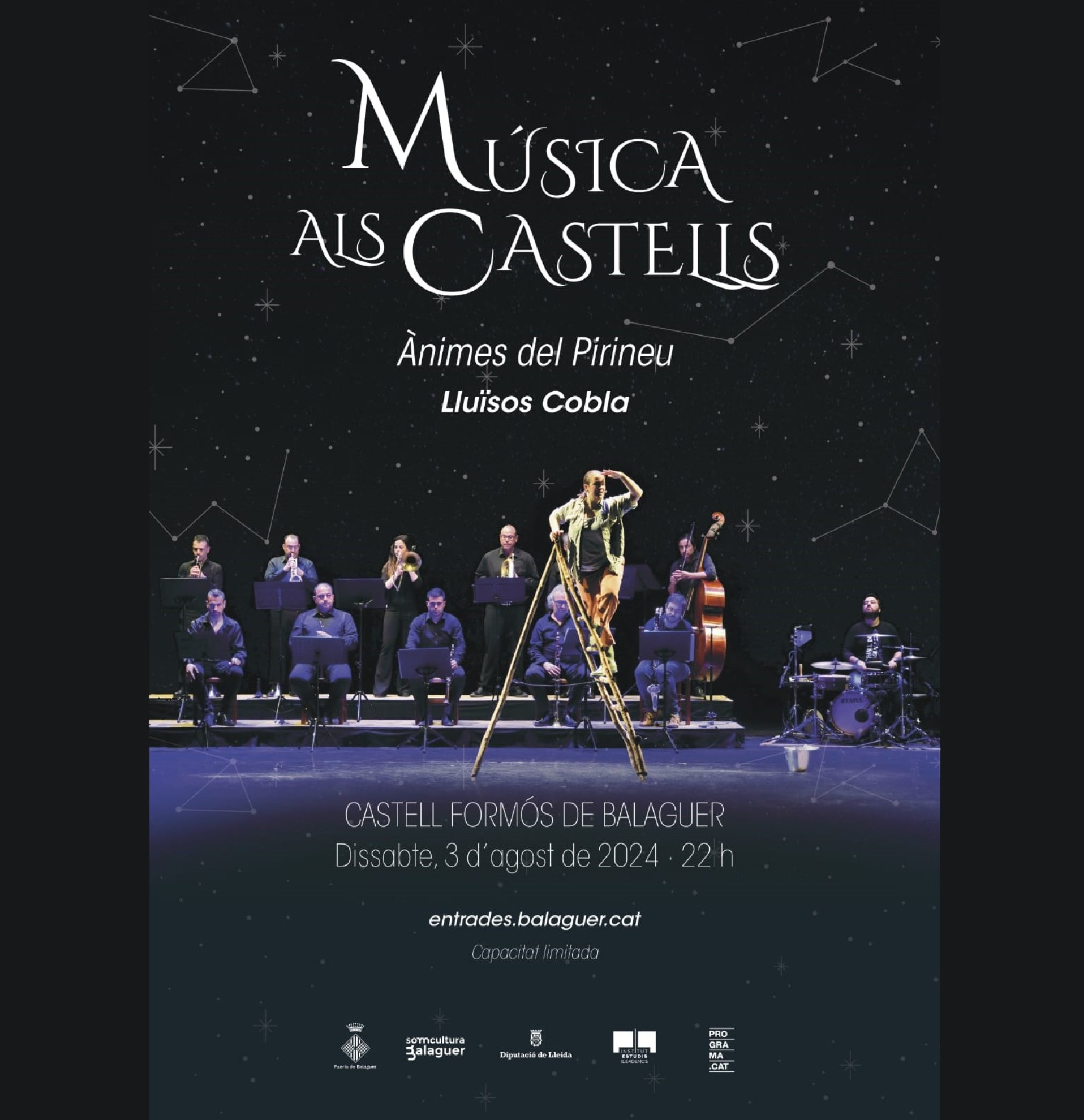 El Castell Formós de Balaguer ha estat escenari aquest dissabte d'una nova edició del cicle 'Música als Castells'' i un cop més la cobla-fusió n'ha estat protagonista amb el concert Ànimes del Pirineu