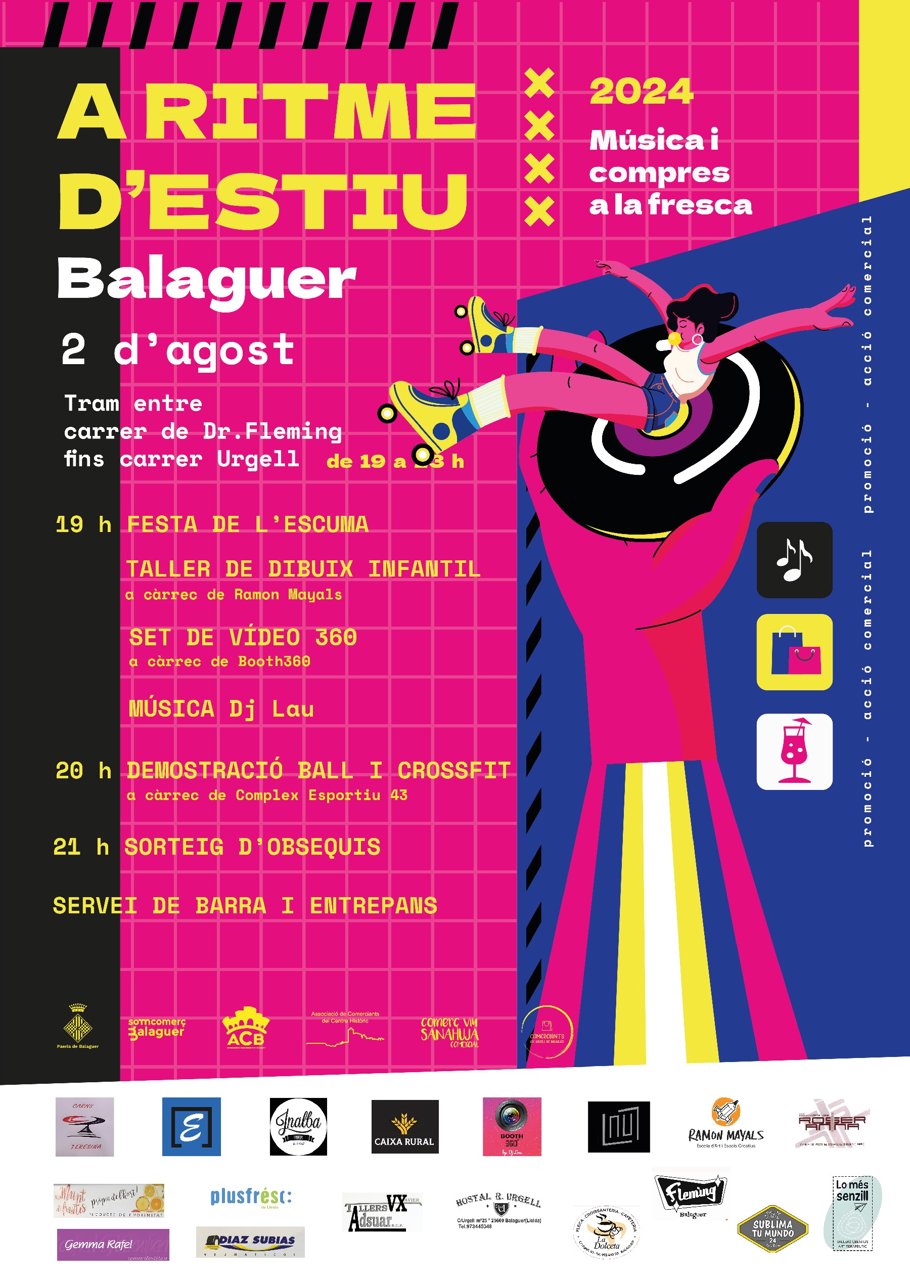 El proper divendres dia 2 d'agost tindrà lloc novament l'activitat 'A RITME D'ESTIU' en aquesta ocasió en el tram del carrer Fleming fins al carrer d'Urgell, a càrrec de l'Associació de comerciants del carrer Urgell