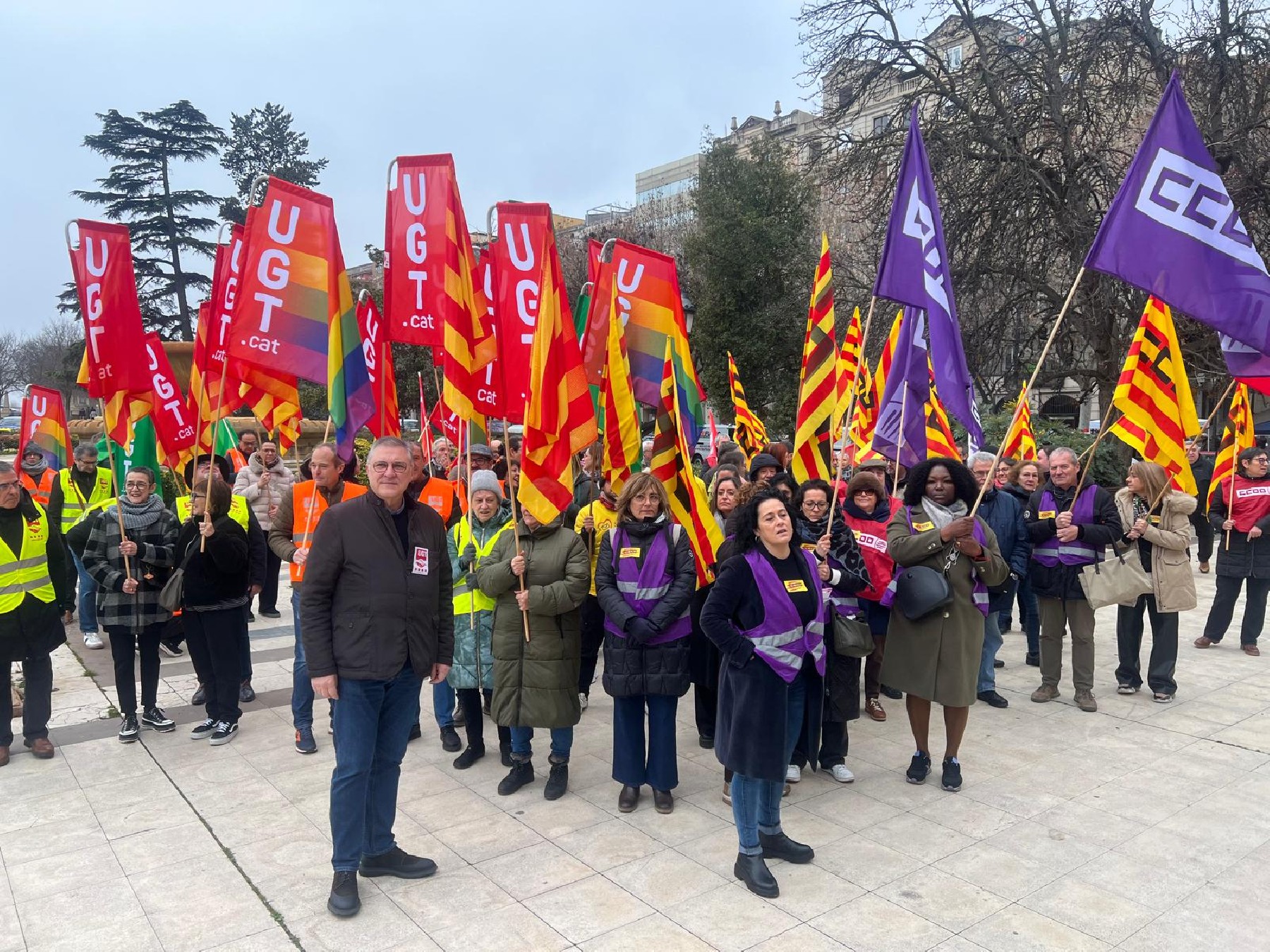 UGT i CCOO es concentren a Lleida per exigir que 'amb els drets de les persones no s'hi juga'