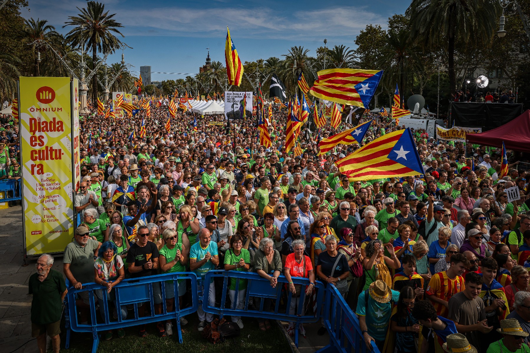 L'independentisme treu 73.500 persones al carrer en la manifestació descentralitzada de la Diada. Les entitats lamenten la divisió dels partits sobiranistes i demanen al moviment que deixi de 'llepar-se les ferides'