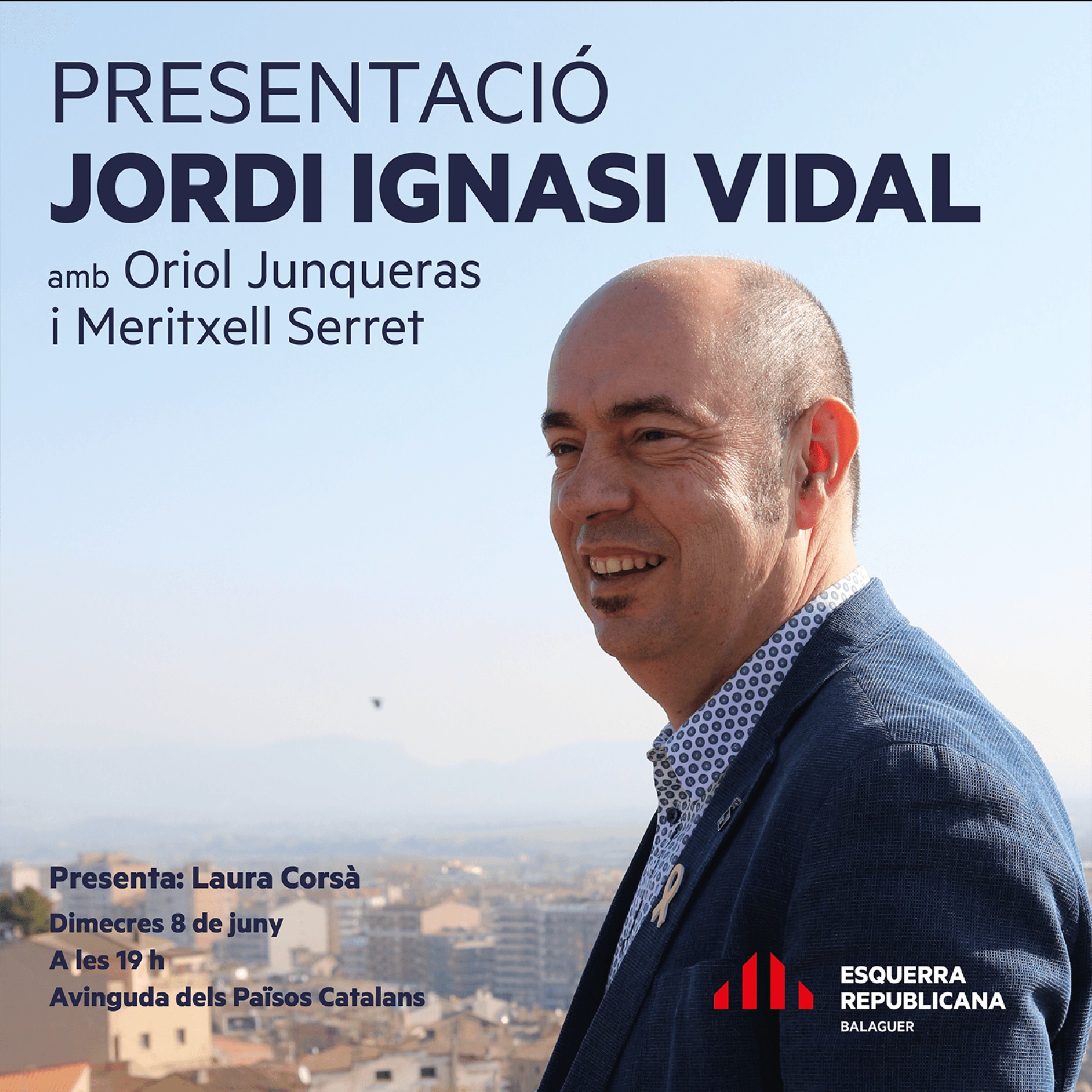 Esquerra Republicana de Balaguer presentarà Vidal el pròxim 8 de juny. L'acte es celebrarà a l'avinguda dels Països Catalans i comptarà amb la presència d'Oriol Junqueras