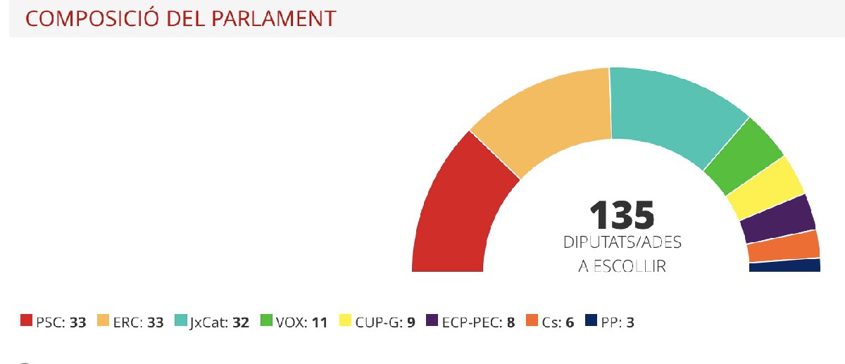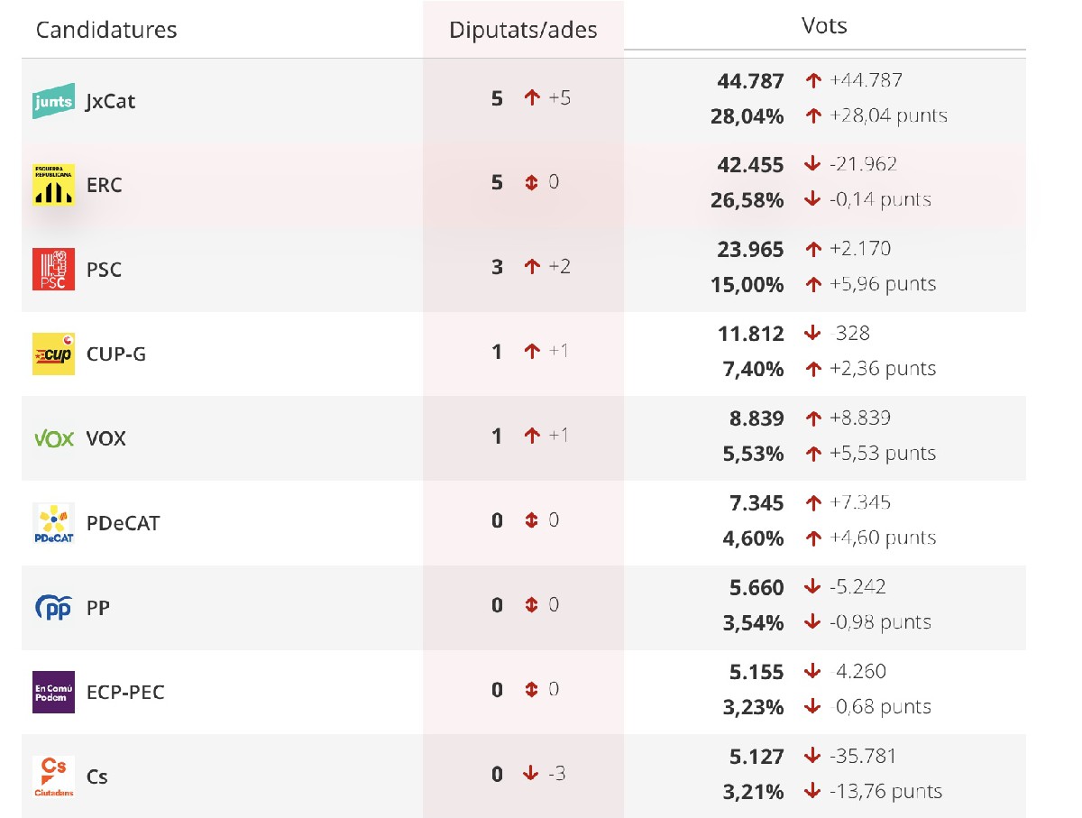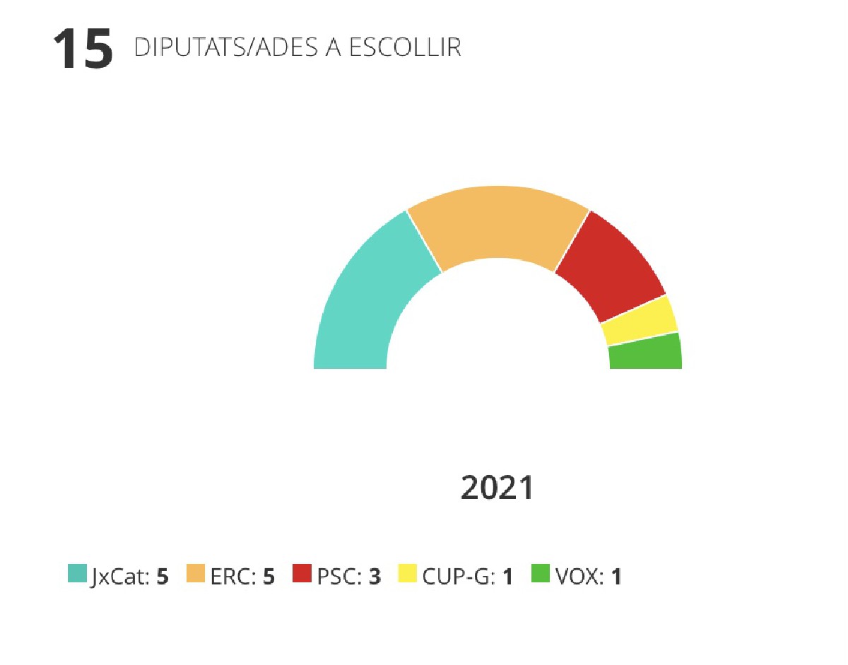 JxCat i ERC empaten a cinc escons a la circumscripció de Lleida i el PSC es queda en tercer lloc amb tres Tant la CUP com VOX obtenen un diputat, mentre que el PDeCAT i Cs es queden sense representació lleidatana al Parlament