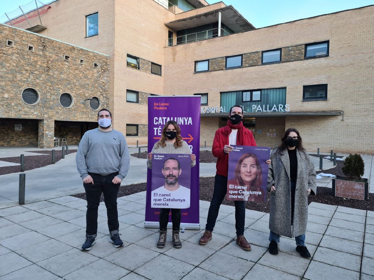 Jaume Moya reivindica Lleida, l'Alt Pirineu i Aran com a territori de drets en l'arrencada la campanya electoral d'En Comú Podem davant l'Hospital de Tremp
