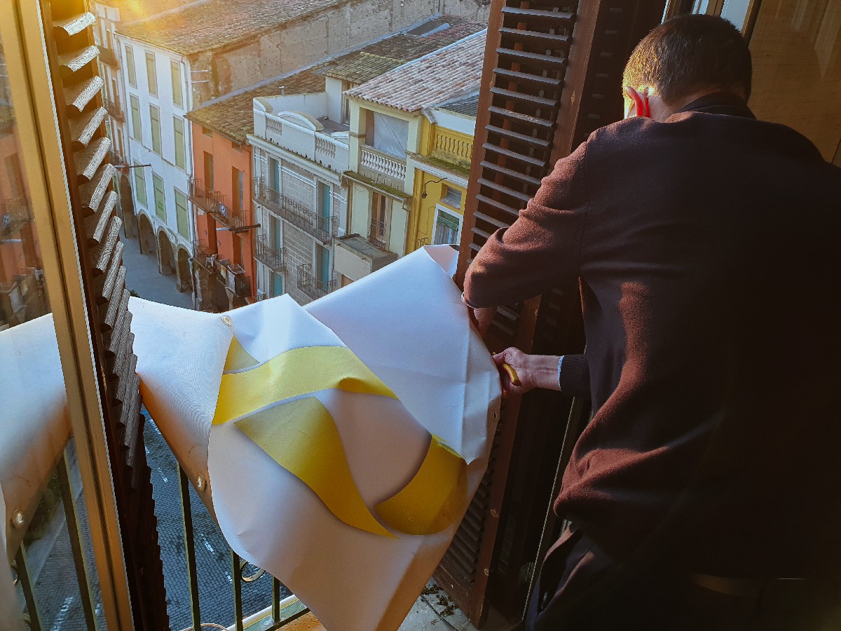 La Paeria de Balaguer retira la pancarta de 'Llibertat presos polítics' de la façana de l'edifici consistorial. La JEZ ha obligat a prendre aquesta mesura. Jordi Ignasi Vidal: 'la retirada no té cap sentit però no farem una lluita d'això'