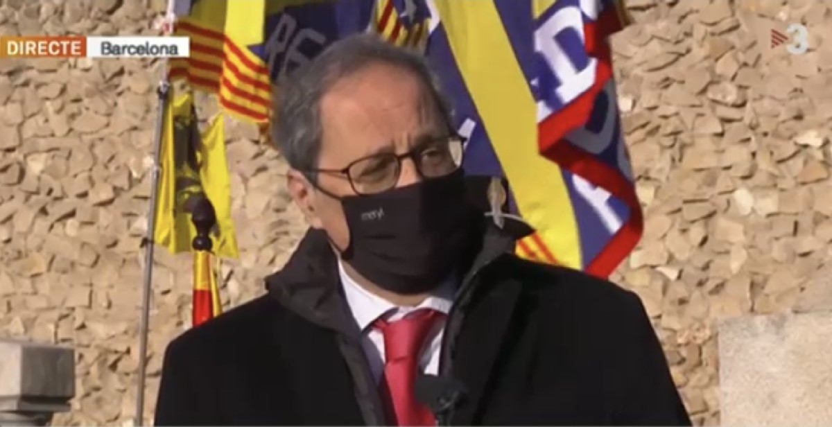 Torra assenyala la 'disjuntiva claríssima' entre la monarquia espanyola i una república catalana. Per la seva banda Aragonès titlla d''allunyat de la realitat' el discurs de Nadal de Felip VI. Tots dos han participat a l'ofrena floral del Govern a la tom