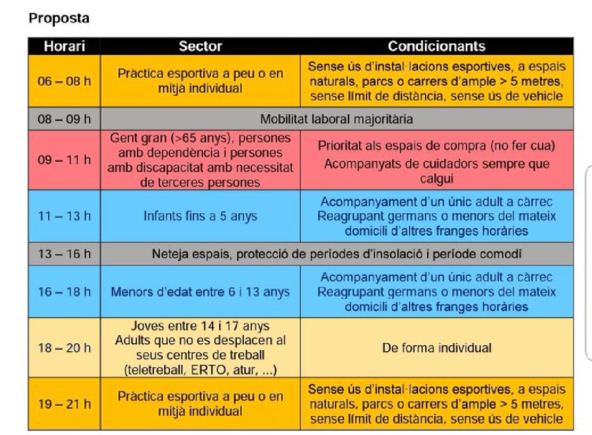 El Govern proposa un pla per distribuir en franges horàries les sortides de nens, gent gran, esportistes i altres adults