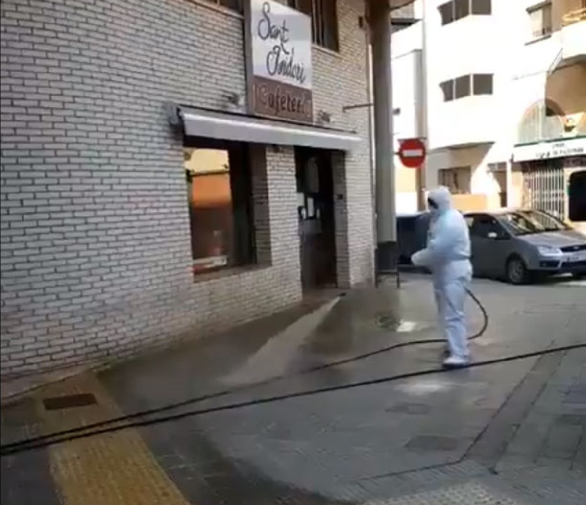 La Paeria de Balaguer amplia la desinfecció que està duent a terme aquests dies per evitar la propagació del coronavirus a l'exterior d'alguns establiments com farmàcies, botigues d'alimentació o forns de pa