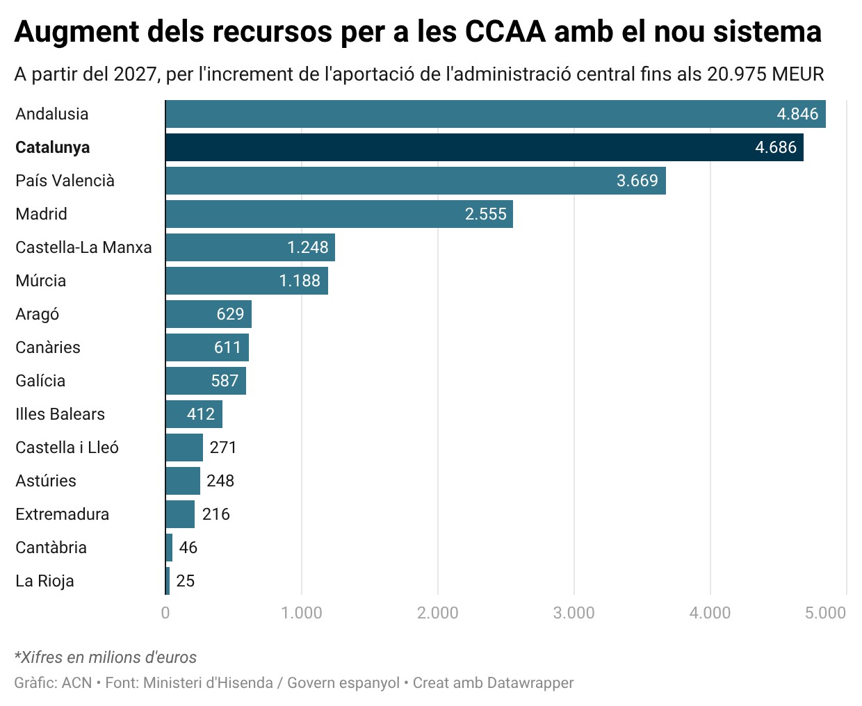 El nou finançament proposa recaptar el 56,5% de l'IVA i el 55% de l'IRPF i canvia els criteris de població ajustada. El sistema modifica els mecanismes de compensació i augmenta en prop de 21.000 milions el model vigent