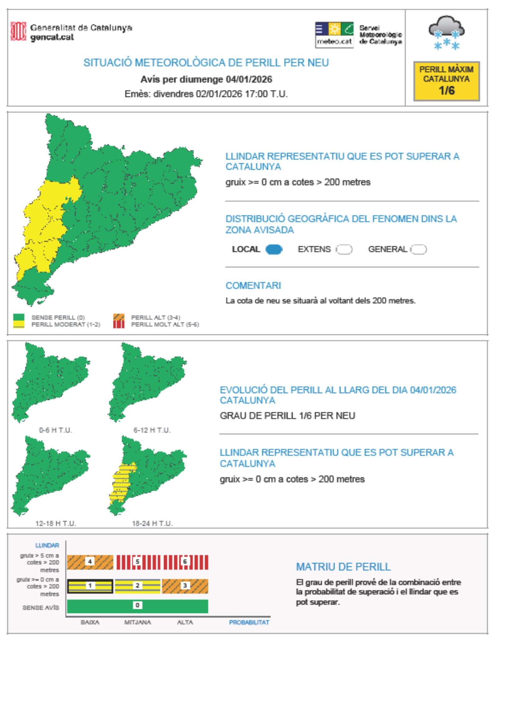 Activada l'alerta per fred molt intens durant els propers tres dies. Es manté en alerta el Pla NEUCAT per la possibilitat de nevades a cota 0 metres sobretot a la Depressió Central