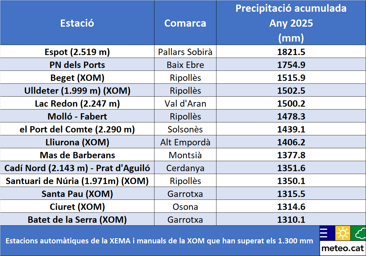 El 2025 tanca com el quart any més càlid a Catalunya i plujós en general, segons el Meteocat. El desembre del 2025 ha estat el més plujós del segle XXI