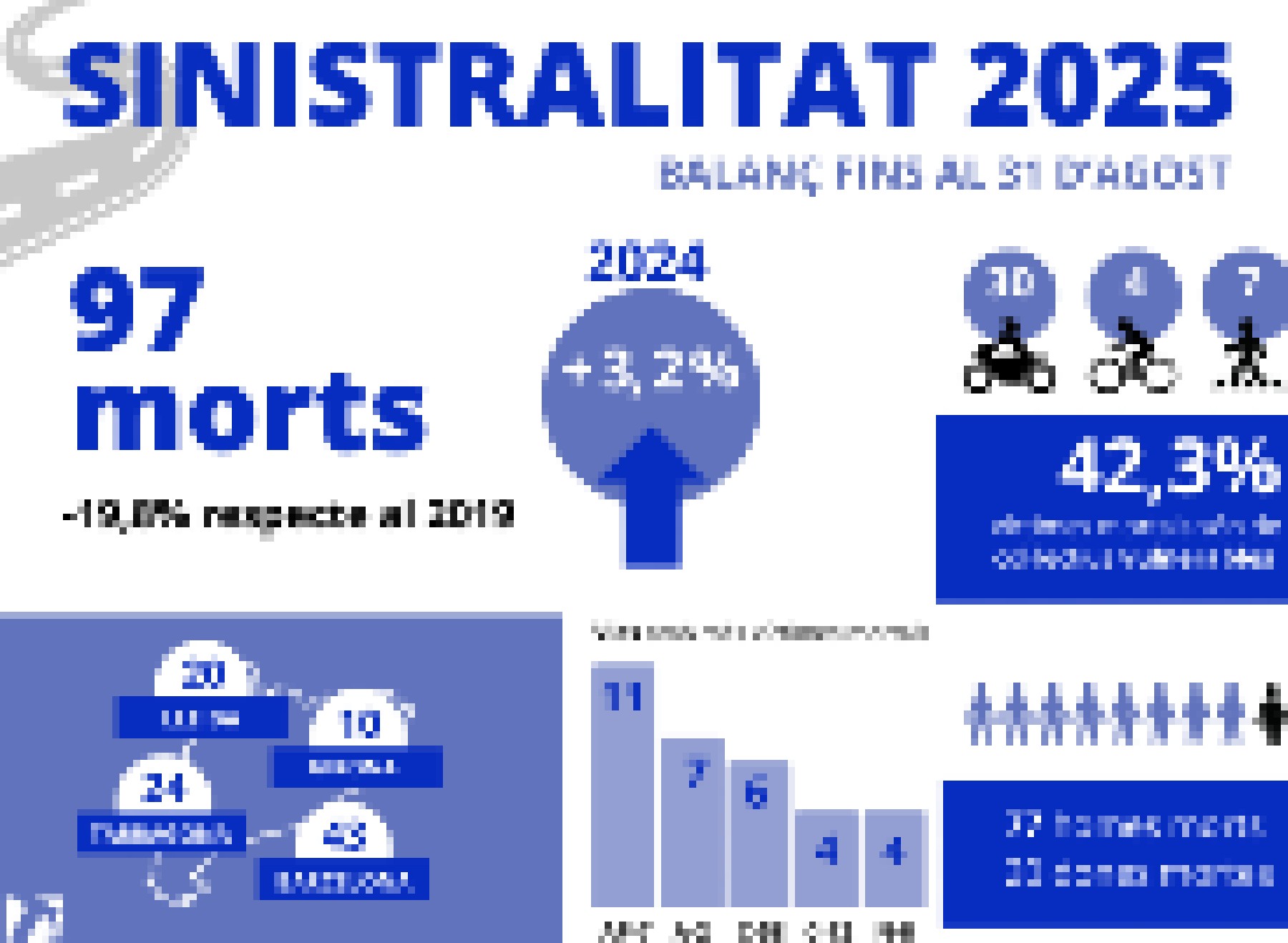 Balanç de la sinistralitat a la xarxa viària catalana fins el 31 d'agost. Un total de 97 persones han perdut la vida a les carreteres catalanes