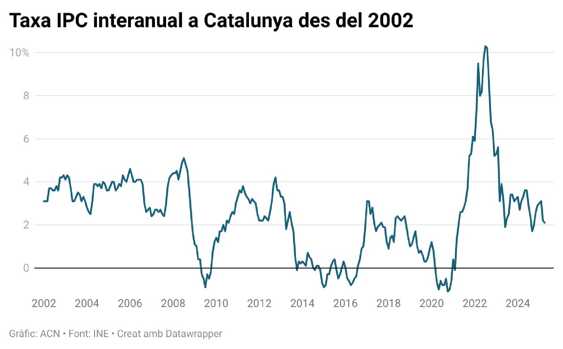 La inflació a Catalunya es modera una dècima a l'abril i se situa en el 2,1%. Al conjunt de l'Estat, l'IPC va ser del 2,2% pel descens dels preus del gas i de l'electricitat. A la demarcació de Lleida es va moderar sis dècimes