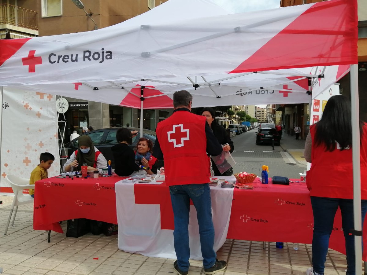Creu Roja instala una carpa al Passeig de l'Estació de Balaguer en motiu del Dia Internacional de la Creu Roja i de la Mitja Lluna Roja. S'hi fan tallers infantils i és pren la tensió arterial i la glucosa