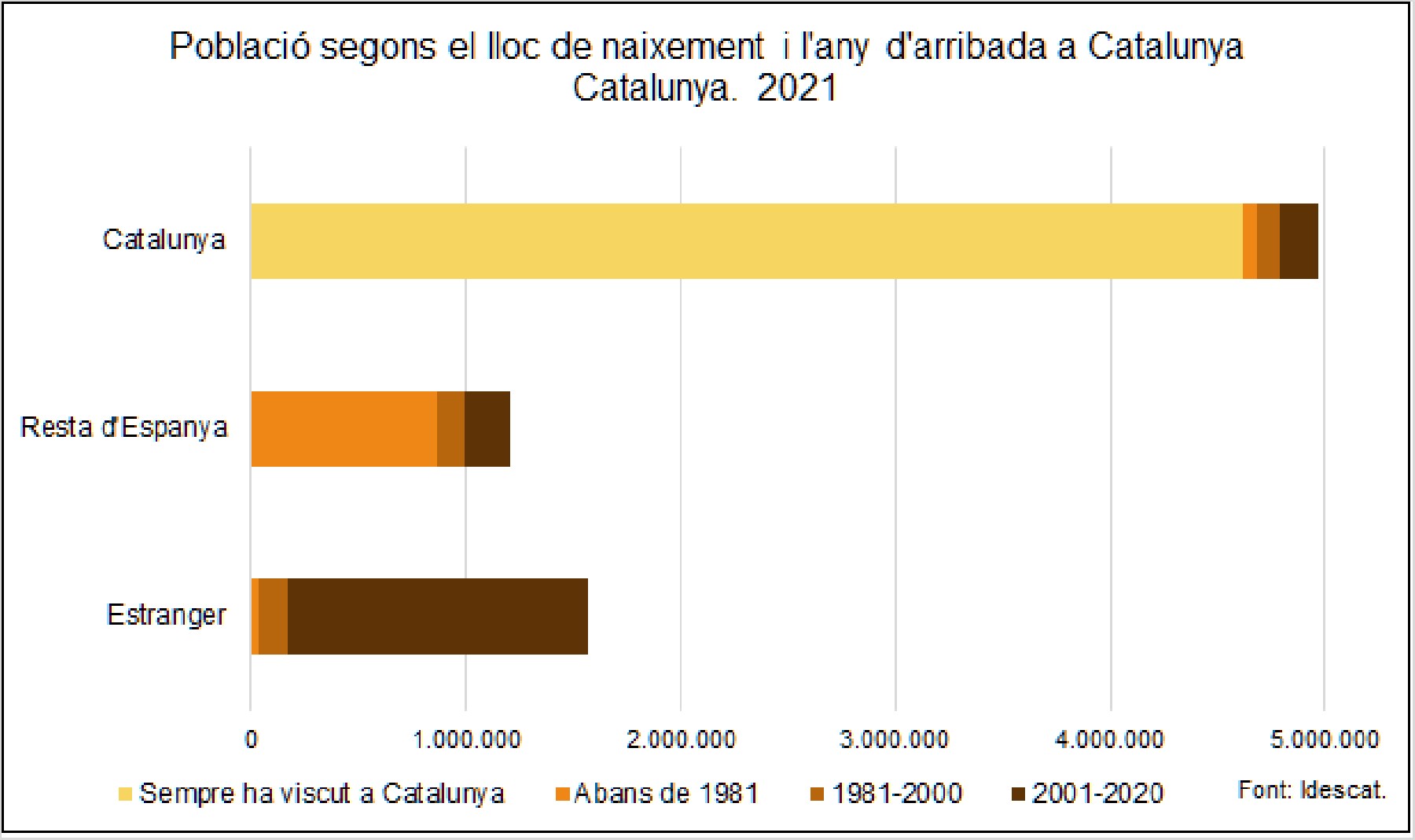 El 23% de la població de Catalunya hi ha arribat després de l'any 2000. El 90% dels nascuts a l'estranger ho han fet durant el segle XXI