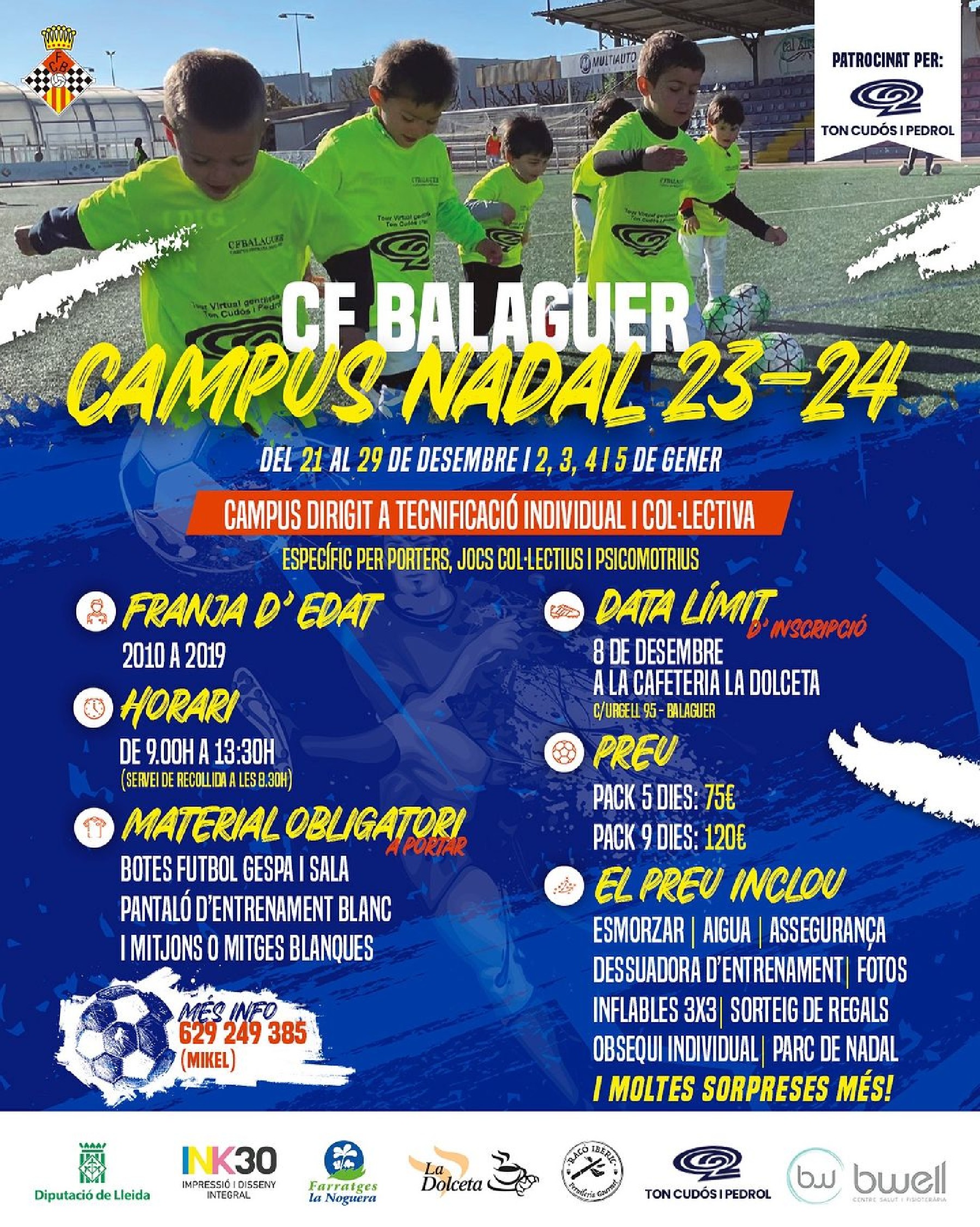 D'altra banda, el Club Futbol Balaguer ha presentat el Campus de Nadal. Es realitzarà del 21 al 29 de desembre i del 2 al 5 de gener.