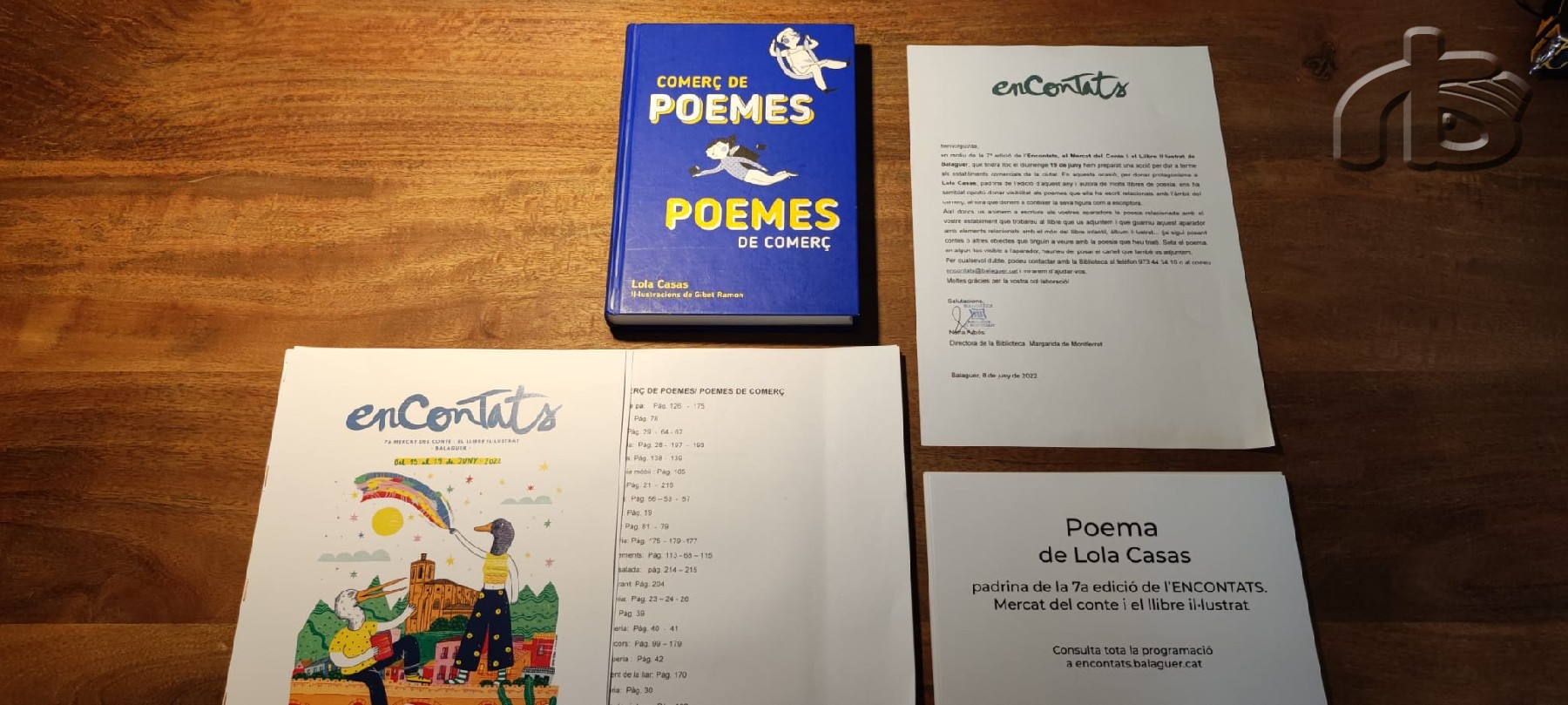 Els poemes que hi haurà als diferents aparadors de la ciutat estan extrets del llibre "Poemes de comerç, comerç de poemes", de Lola Casas, un llibre que conté poemes sobre les diferents tipologies de comerços i que els establiments de la ciutat podran escollir en funció del negoci que regentin.