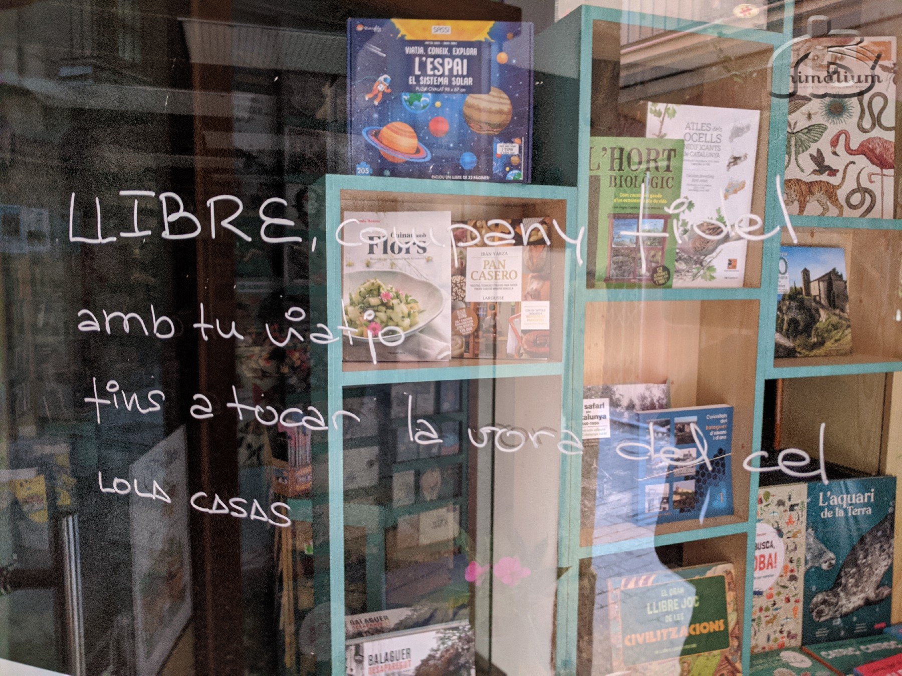 El comerç de Balaguer se suma a l'Encontats, el mercat del conte i el llibre il·lustrat. Ho fa escrivint als vidres dels seus aparadors fragments de poemes de Lola Casas, mestra, escriptora i padrina de l'Encontats d'enguany.