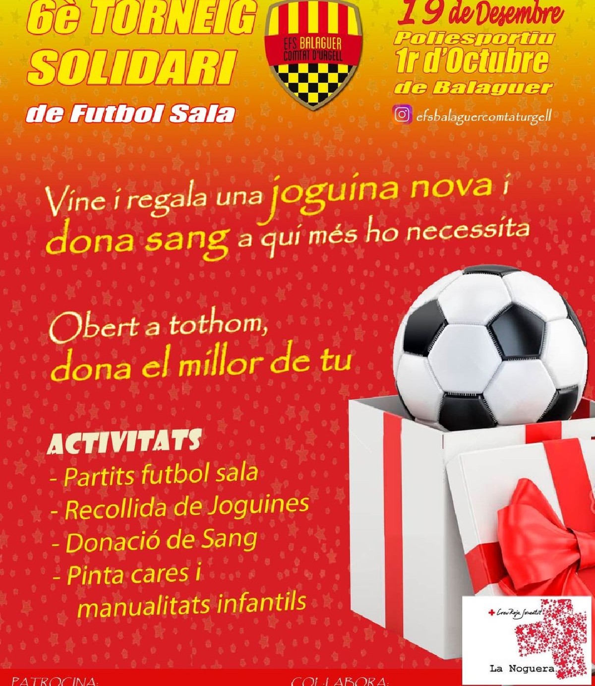 És un torneig solidari donat que es recolliran joguines per a la campanya de Reis de Creu Roja la Noguera. Durant la jornada també es duran a terme tallers de manualitats i pinta cares per als més menuts.