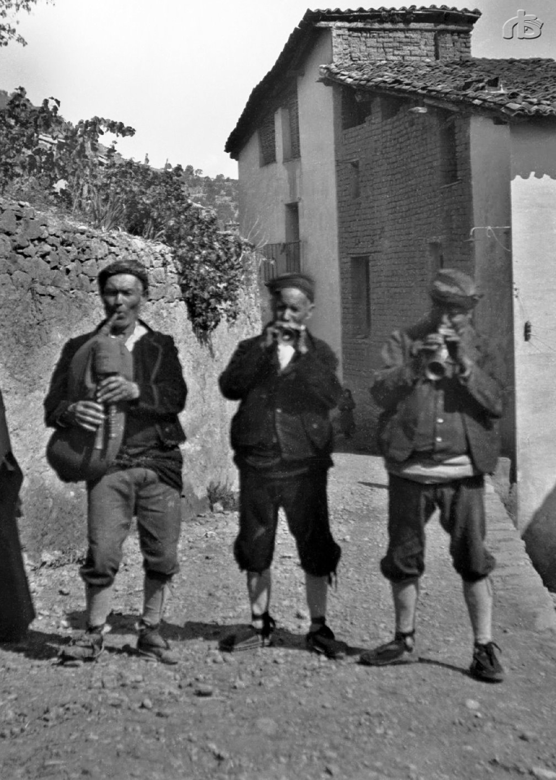 Fotografies: Els botets de Graus aquest 2023, amb els mateixos instruments dels antics Botets de Casserres. Els Botets de Casserres en una foto de 1911 a Graus, ja cap el final de la seva trajectòria musical.