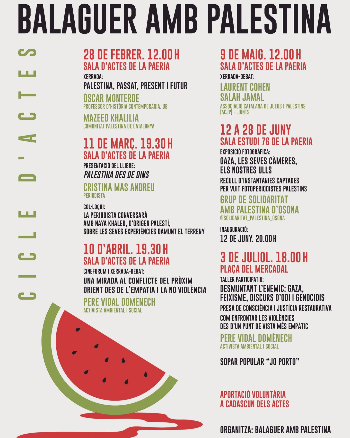 Balaguer impulsa un cicle d’activitats solidàries amb Palestina durant el primer semestre de l’any