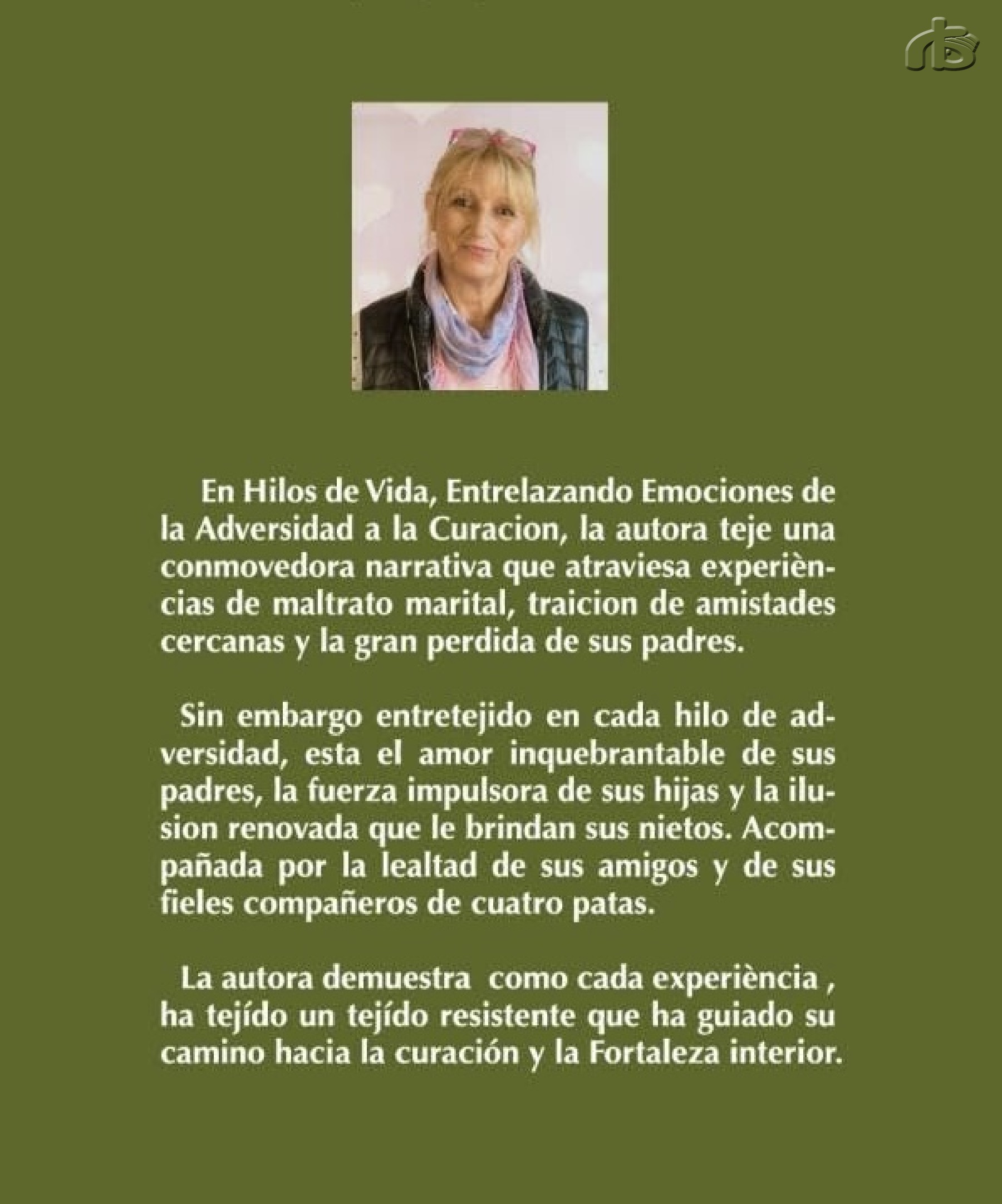 "Hilos de vida: Entrelazando emociones, de la adversidad a la curación" és una obra magistral que desvetlla la riquesa dels fils que han conformat l'existència de l'autora. En aquest relat envoltant, els fils de vida, s'entrellacen amb gràcia i elegància, teixint un tapís fascinant que exposa com l'adversitat es converteix en el fil conductor cap a la curació".