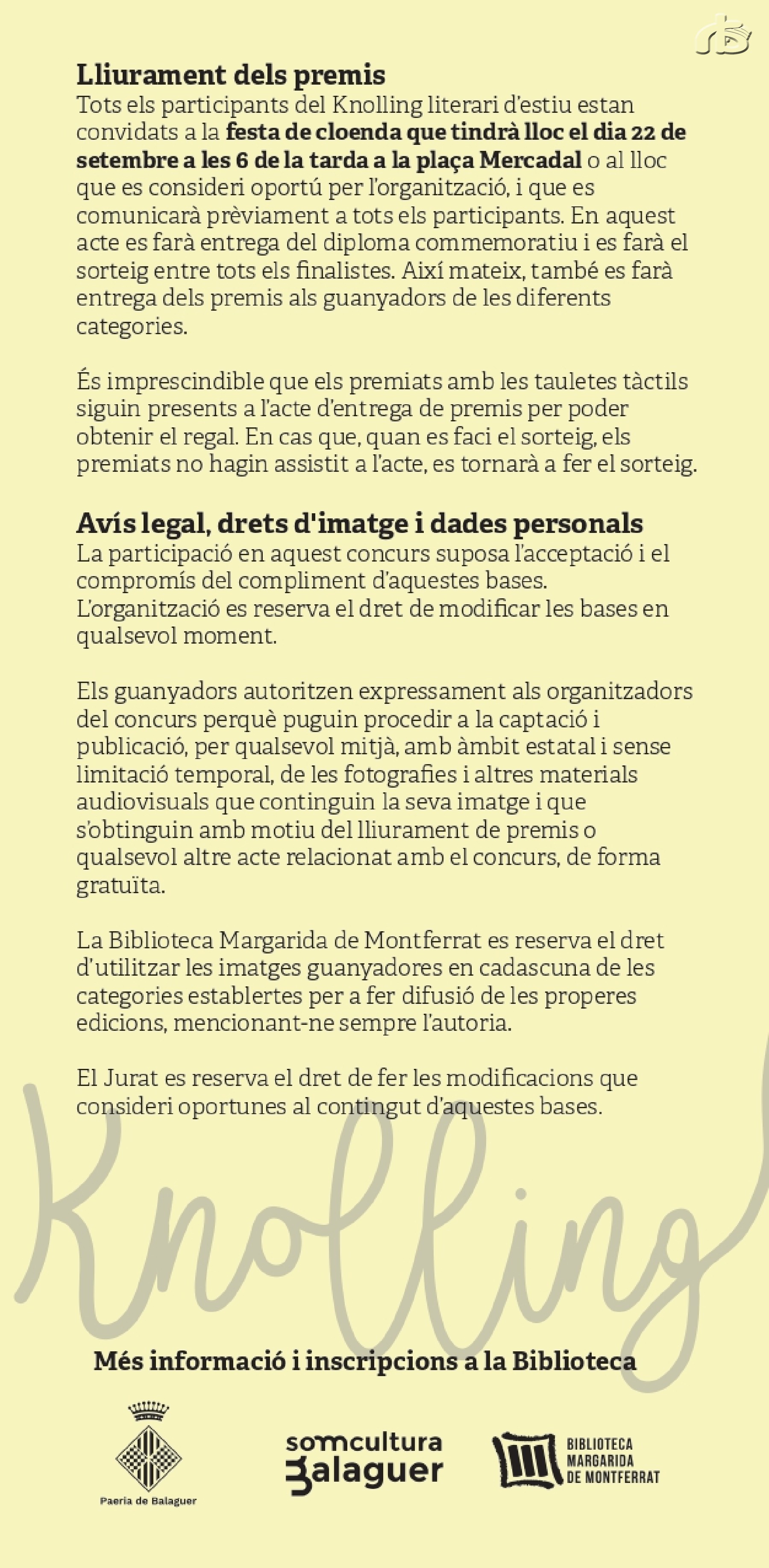 El període d'inscripció i participació al Knollingliterari d'estiu comença el dia 19 de juny de 2023 i acaba el 8 de setembre de 2023, ambdues dates incloses.