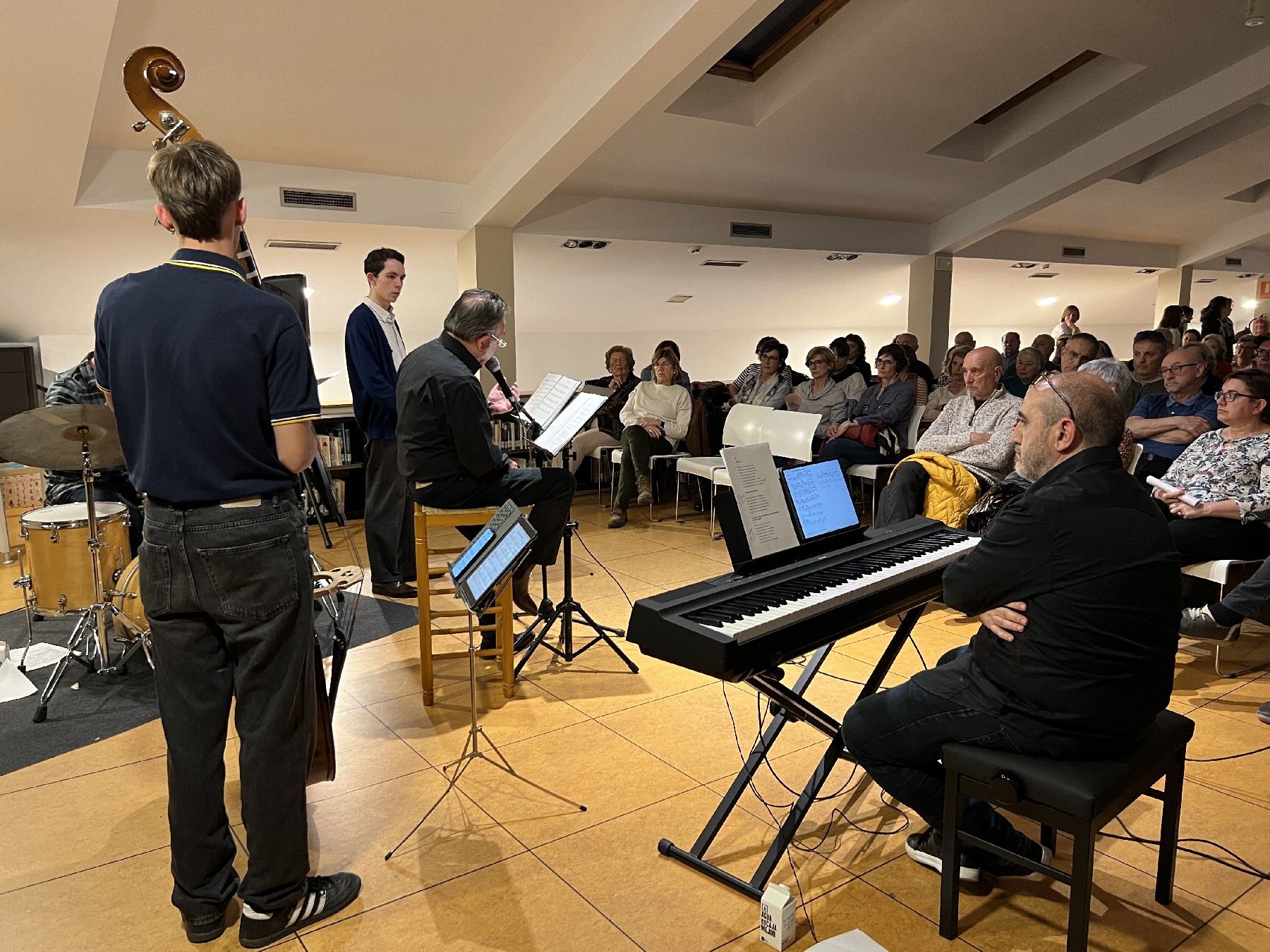L'espectacle comptava amb la col·laboració de l'Escola de Municipal de Música i amb els musics : Xavier Monge al piano, Enric Massip a la trompeta, Eloi Peralta al contrabaix, i Pol Alonso a la bateria. Xavier Monge diu que la selecció musical ha estat dirigida pel Carles Sanuy, amb estàndards del jazz.