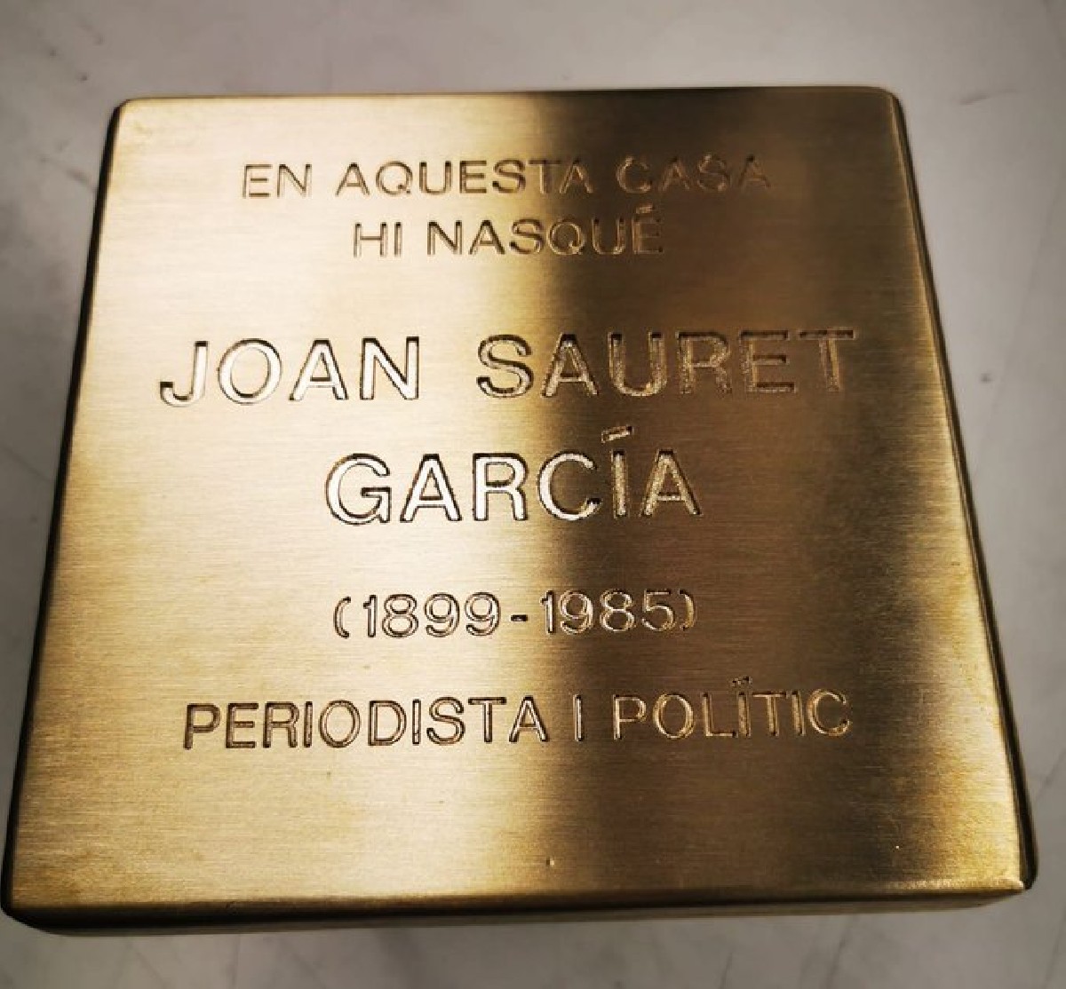 Després de l'acte s'ha descobert una placa d'homenatge a Joan Sauret, al davant de la casa on va néixer i viure durant bona part dels primers 30 anys de la seva vida, al número 43 de la Plaça Mercadal
