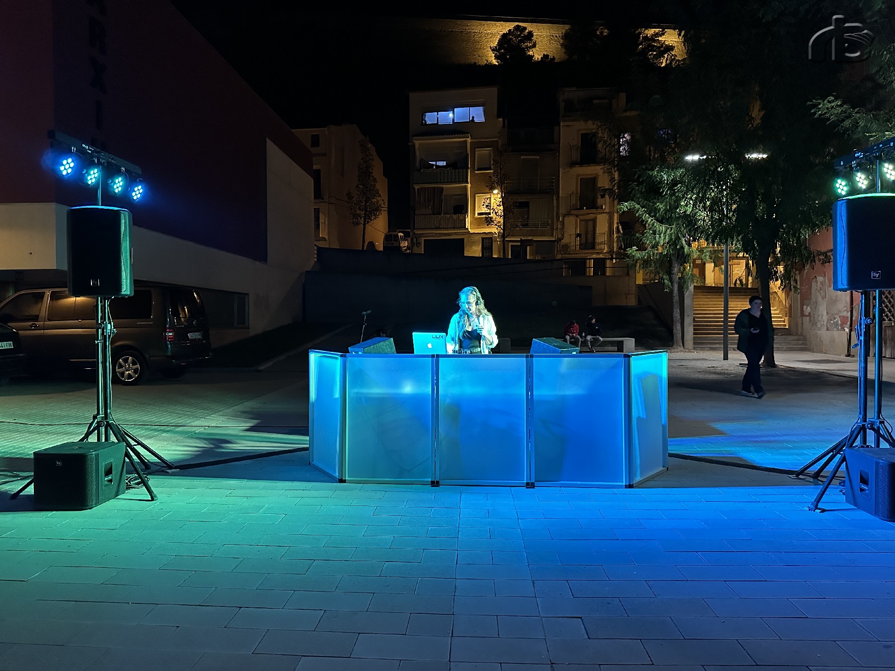 La projecció s'ha fet a la plaça dels Comtes d'Urgell, davant del Museu, i ha anat acompanyada d'una sessió de música electrònica a càrrec de Eleene d'Am .