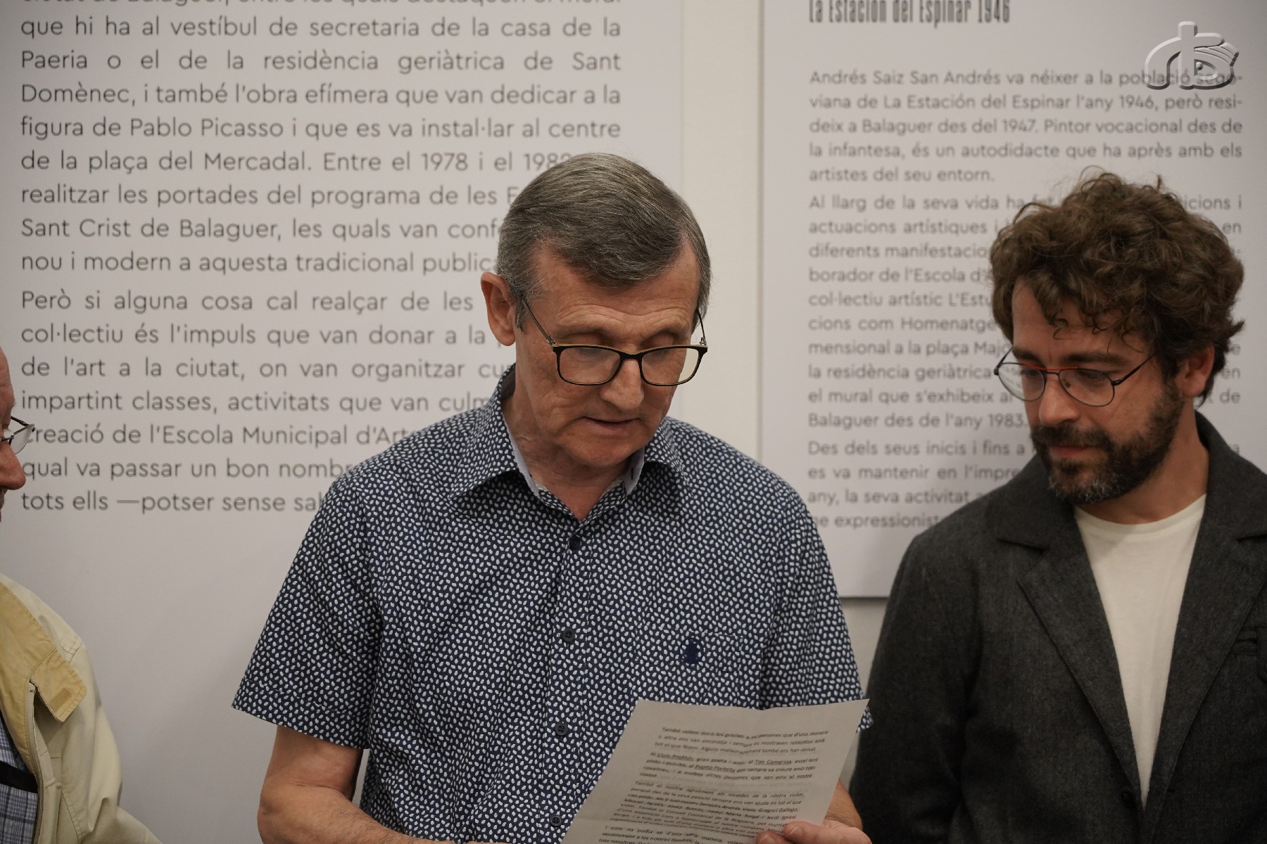 En l'acte d'inauguració també ha participat el paer den cap de Balaguer, Jordi Ignasi Vidal, que ha fet referencia a que van ser aquest artistes els impulsors de la creació de l'Escola d'Arts Plàstiques a Balaguer. ( ara ja desapareguda ) .