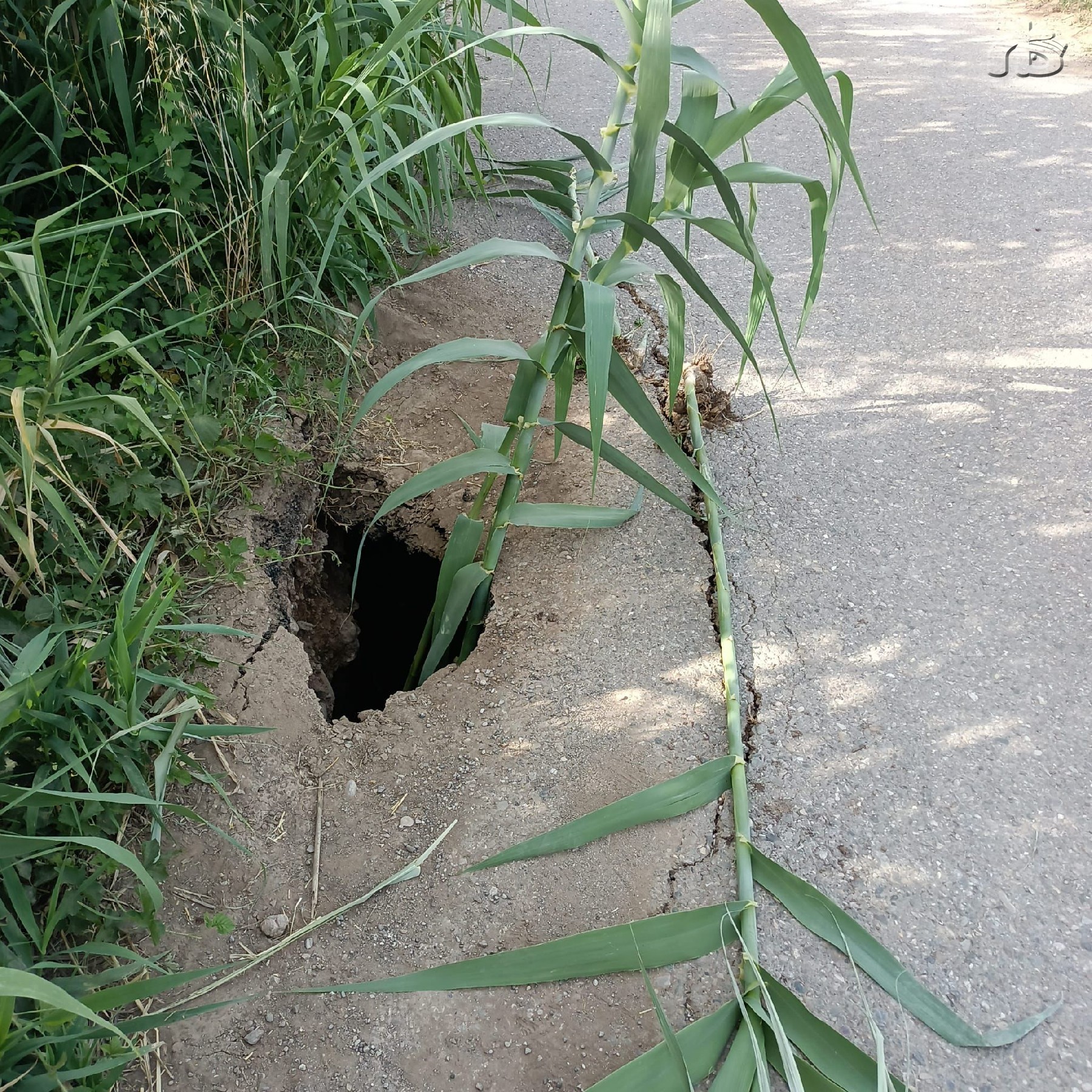 Aquest es va produir a causa de l'enfonsament d'un canal de reg, en el qual s'ha fet un forat a causa de les filtracions d'una canonada. La paeria instal·larà ara un nou conducte i compactarà tota la zona.