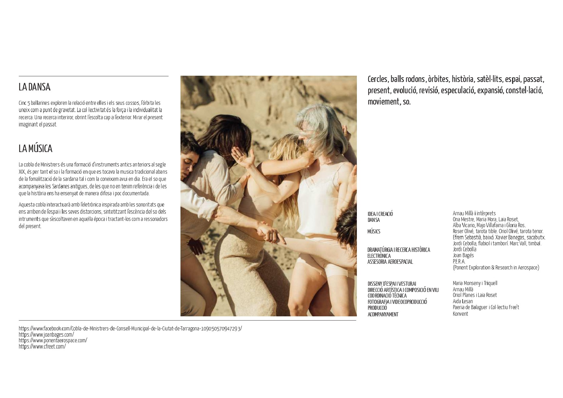 Òrbita és una creació multidisciplinària que apropa els espectadors als orígens de la sardana i de les arrels tradicionals des de llenguatges de creació innovadors i contemporanis. Una proposta artística que utilitza l'arrel, la tradició i la cultura popular com a motor creatiu per revisar, des d'un punt de vista contemporani i experimental, el patrimoni immaterial i l'herència cultural.