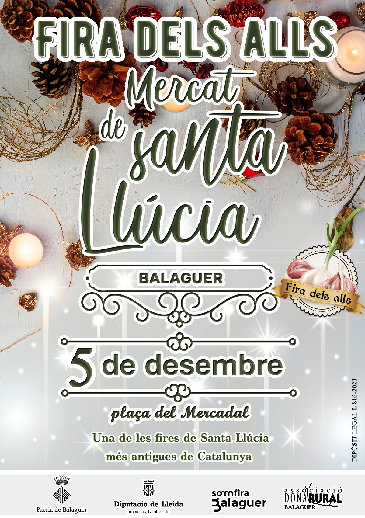 El dia 5 de desembre se celebrarà el mercat nadalenc per excel·lència de la ciutat, la Fira Mercat de Santa Llúcia, una de les fires amb més història i tradició, anomenada també Fira dels Alls tot rememorant el passat històric. Precisament, l'Associació Dona Rural oferirà una mostra de diferents tipus d'alls i també es lliurarà la recepta de la tradicional sopa d'alls, escrita pel divulgador i escriptor gastronòmic Josep M. Morell.
