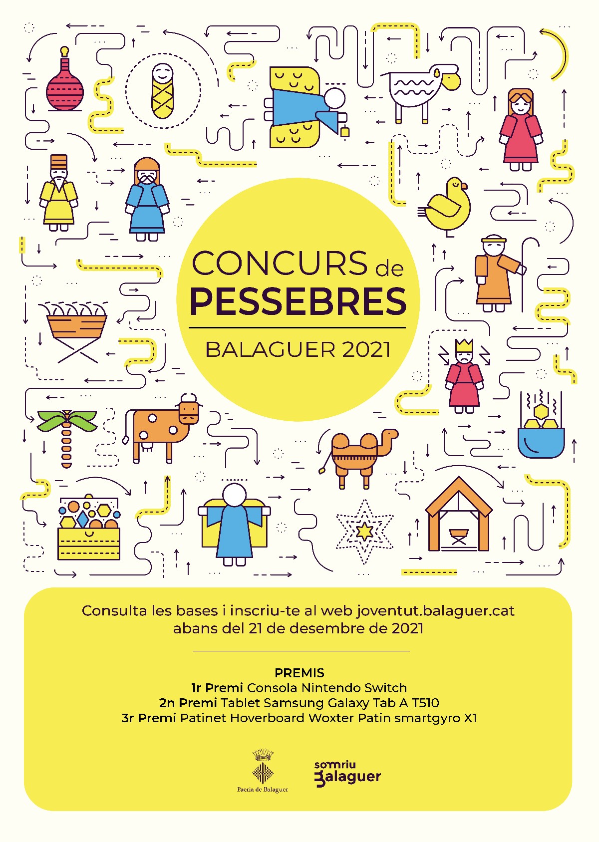 D'altra banda, també aquest any es farà el 2n Concurs de pessebres, després de la bona acollida de l'any passat, per fomentar les tradicions nadalenques, motivant als balaguerins i balaguerines en la construcció d'un pessebre. Els pessebres poden ser construïts amb qualsevol material, estil, tècnica. Queda totalment prohibit utilitzar plantes o substàncies sotmeses a protecció i en perill d'extinció, com la molsa o grèvol. Sí que es podran utilitzar pinyes, tiges, llavors o fulles. Es permet la utilització de diferents tècniques, textures, i materials. Com a novetat, enguany s'ha allargat el temps de durada del vídeo, segons ha explicat la tècnica d'Ensenyament, Imma Montoliu.