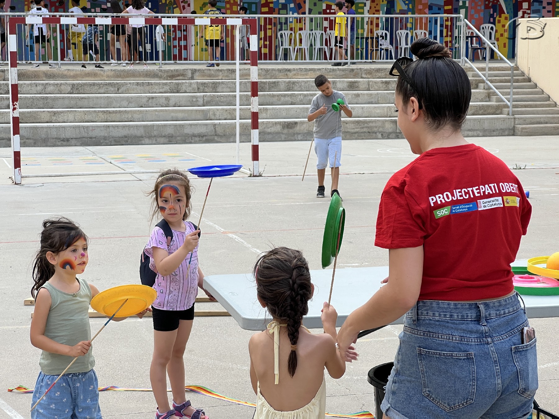 La Paeria ha inaugurat aquest dijous una nova edició del projecte Pati Obert a l'Escola Àngel Guimerà. Ho ha fet en una jornada especial amb la presència de la companyia La Pantomima, amb jocs artesanals de fusta i material de circ