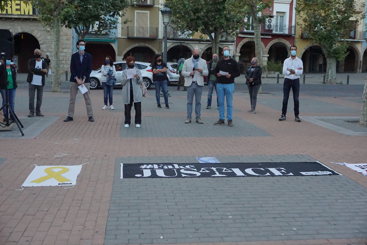 La plaça del Mercadal de Balaguer ha estat aquest dilluns el punt de concentració de la manifestació de rebuig a la inhabilitació del president Quim Torra. L'acte ha comptat amb la lectura dels manifestos de l'ANC i l'AMI entre altres