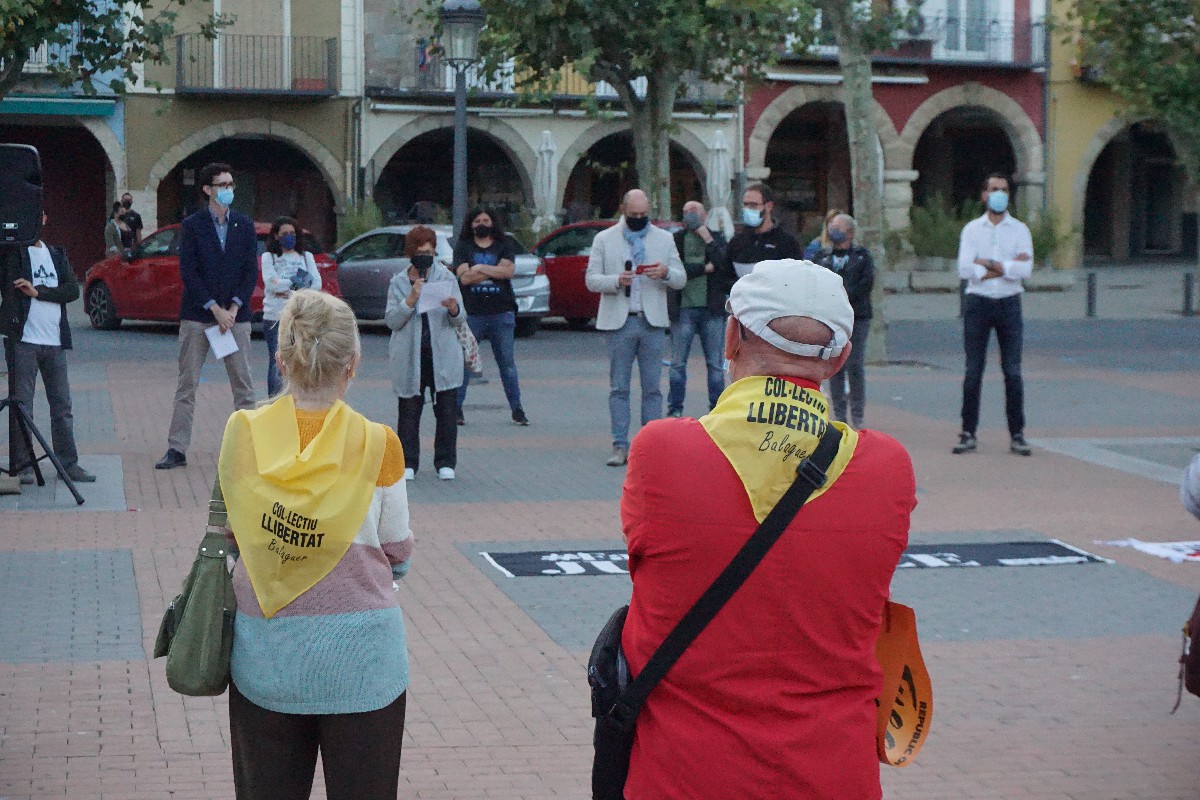 La plaça del Mercadal de Balaguer ha estat aquest dilluns el punt de concentració de la manifestació de rebuig a al inhabilitació del president Quim Torra. L'acte ha aplegat prop de 200 persones entre representants polítics de les forces sobiranistes i membres de les entitats organitzadores, ANC i Òmnium, a més de nombrosos ciutadans.