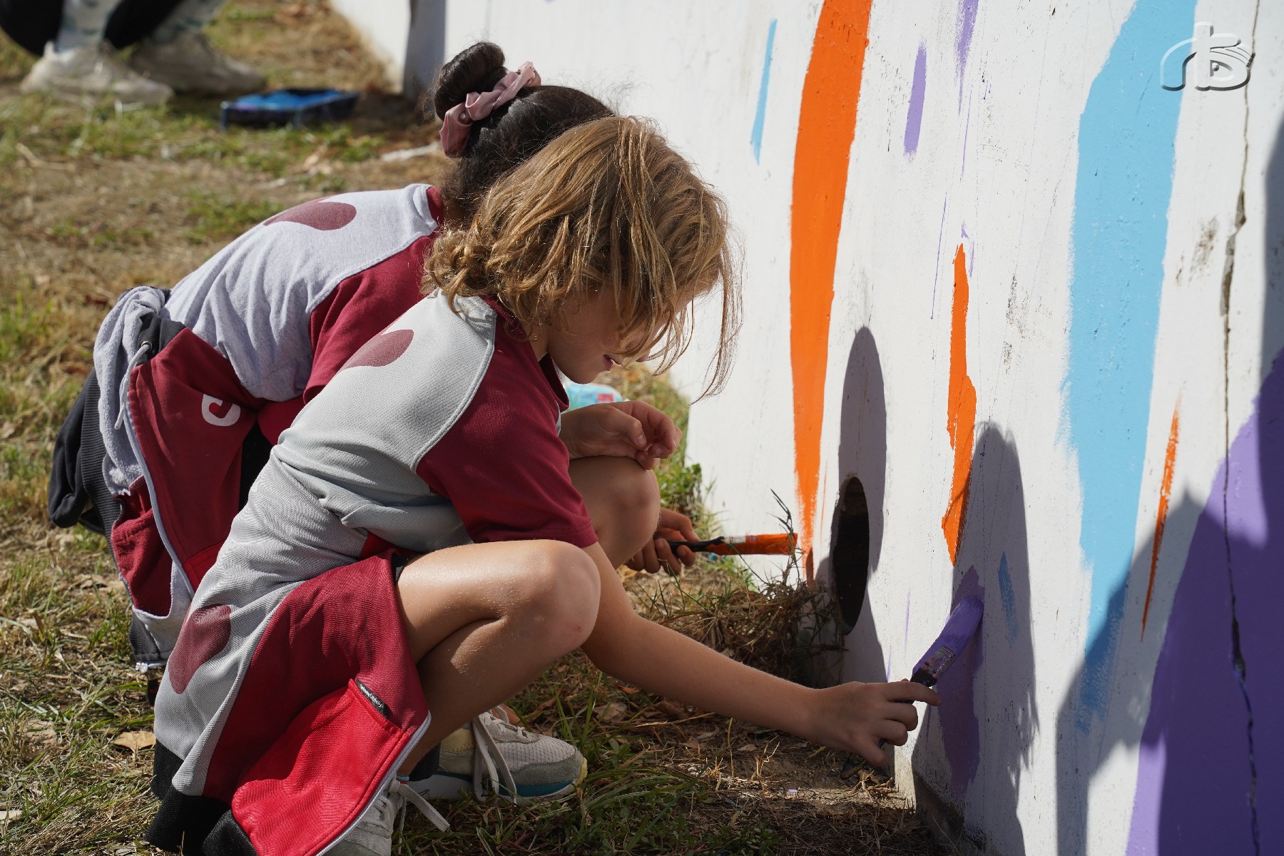 En la creació d'aquest mur han participat alumnes dels diferents centre educatius de la ciutat, dins l'assignatura d'Educació Visual i Plàstica. El taller per a fer el mur ha estat conduït pels il·lustradors Helga Ambak i Carles Ube Efe, i l'educador Ricard Tàpera.