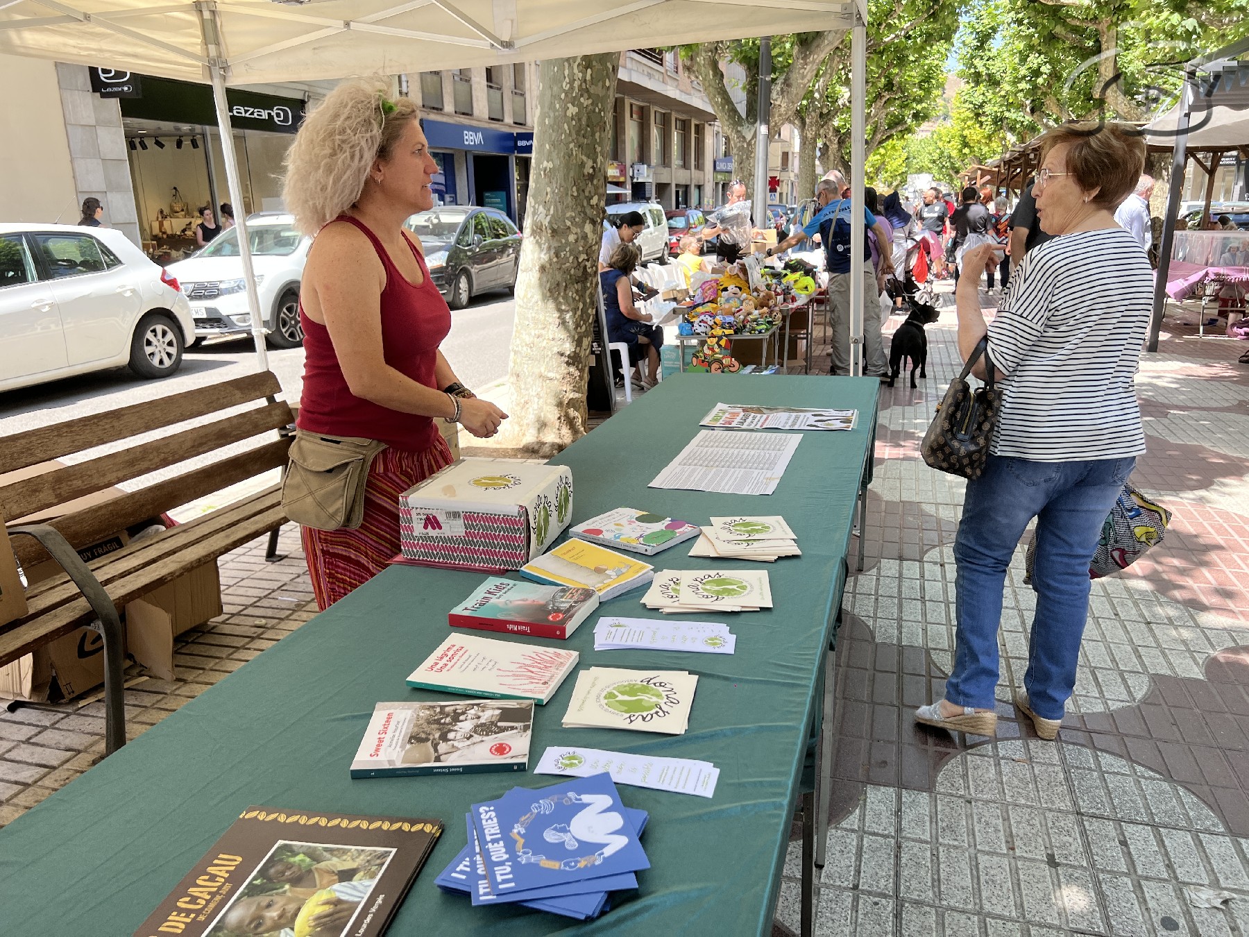 D'altra banda, com en edicions anteriors i per continuar amb els eixos de l'associació, durant tot el dia es celebrarà el Dia del Comerç Just amb el lema JO TRIO!, segons també ha explicat a Ràdio Balaguer Marta Blanch, que també ha dit que en el recorregut del Mercat del Vell es podrà trobar una parada amb productes de comerç just i una altra amb productes de segona mà que els particulars han cedit a Dona Pas perquè les vengui la mateixa entitat. En aquest cas, els diners recaptats es destinaran a Justícia Social.